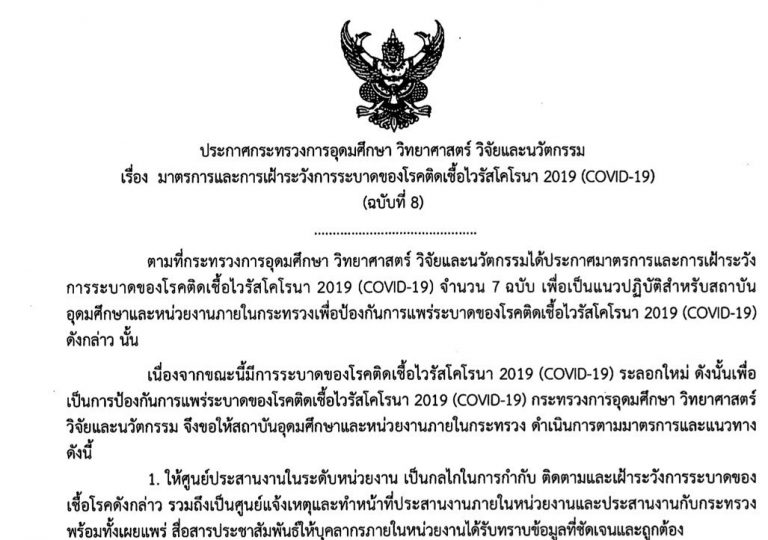 รัฐมนตรี อว. สั่งการมหาวิทยาลัยและหน่วยงานในสังกัด อว. ทุกแห่ง “คุมเข้มมาตรการและพร้อมรับสถานการณ์อย่างเต็มที่”21 ธันวาคม 256321 ธันวาคม 2020อ่านต่อ