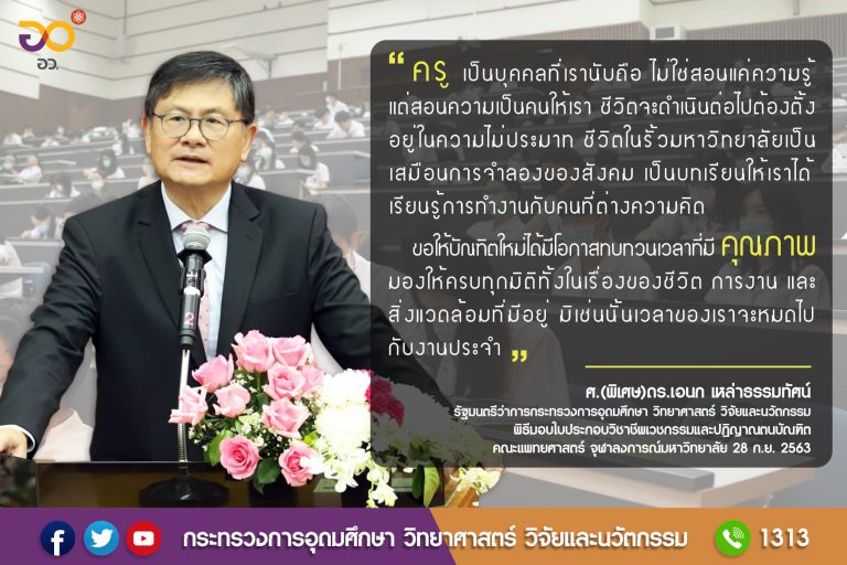 “ครู” คือผู้ที่สอนความเป็นคนให้กับเรา บัณฑิตที่มีคุณภาพควรใช้ชีวิต ใช้เวลาให้มีค่าและมองให้ครบทุกมิติ29 กันยายน 256329 กันยายน 2020อ่านต่อ
