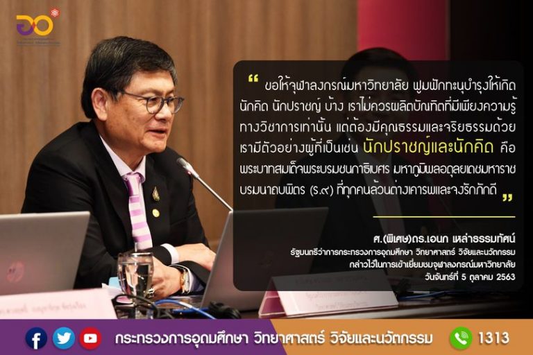 “เราไม่ควรผลิตบัณฑิตที่มีเพียงความรู้ทางวิชาการเท่านั้น แต่ต้องมีคุณธรรมและจริยธรรมด้วย” (5 ตุลาคม 2563)12 ตุลาคม 256312 ตุลาคม 2020อ่านต่อ