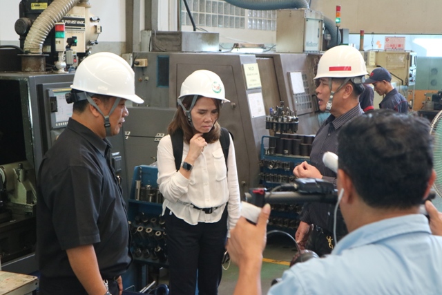 นางอัจฉรา เจริญสุข ผู้อำนวยการ นายอนุสรณ์ ทนหมื่นไวย ผู้ช่วยผู้อำนวยการ และนักมาตรวิทยา ฝ่ายมาตรวิทยามิติ เข้าเยี่ยมชมโรงงาน บริษัท พี.เอ็ม.ซี. กรุ๊ป จำกัด ซึ่งเป็นบริษัทที่เข้าร่วมโครงการพัฒนาผู้ประกอบการวิสาหกิจขนาดกลางและขนาดย่อม (SMEs) ด้วยเทคโนโลยีมาตรวิทยา ประจำปี 2560 ภายใต้โครงการพัฒนาระบบการวัดชิ้นงานบนเครื่องจักรกลขนาดใหญ่ เพื่อเพิ่มประสิทธิภาพในการตรวจสอบชิ้นงาน โดยวัตถุประสงค์ของโครงการนี้เพื่อพัฒนาระบบวัดชิ้นงานบนเครื่องจักรขนาดใหญ่ เพื่อลดเวลาในการตรวจสอบชิ้นงาน และสามารถตรวจสอบชิ้นงานที่ต้องการความถูกต้องสูง พร้อมทั้งร่วมสัมภาษณ์และถ่ายทำวีดีโอถึงความสำเร็จของโครงการดังกล่าว ในการเผยแพร่องค์ความรู้ให้กับผู้ประกอบการวิสาหกิจขนาดกลางและขนาดย่อม (SMEs) ด้วยเทคโนโลยีมาตรวิทยา ณ บริษัท พี.เอ็ม.ซี. กรุ๊ป จำกัด จ.สมุทรปราการ