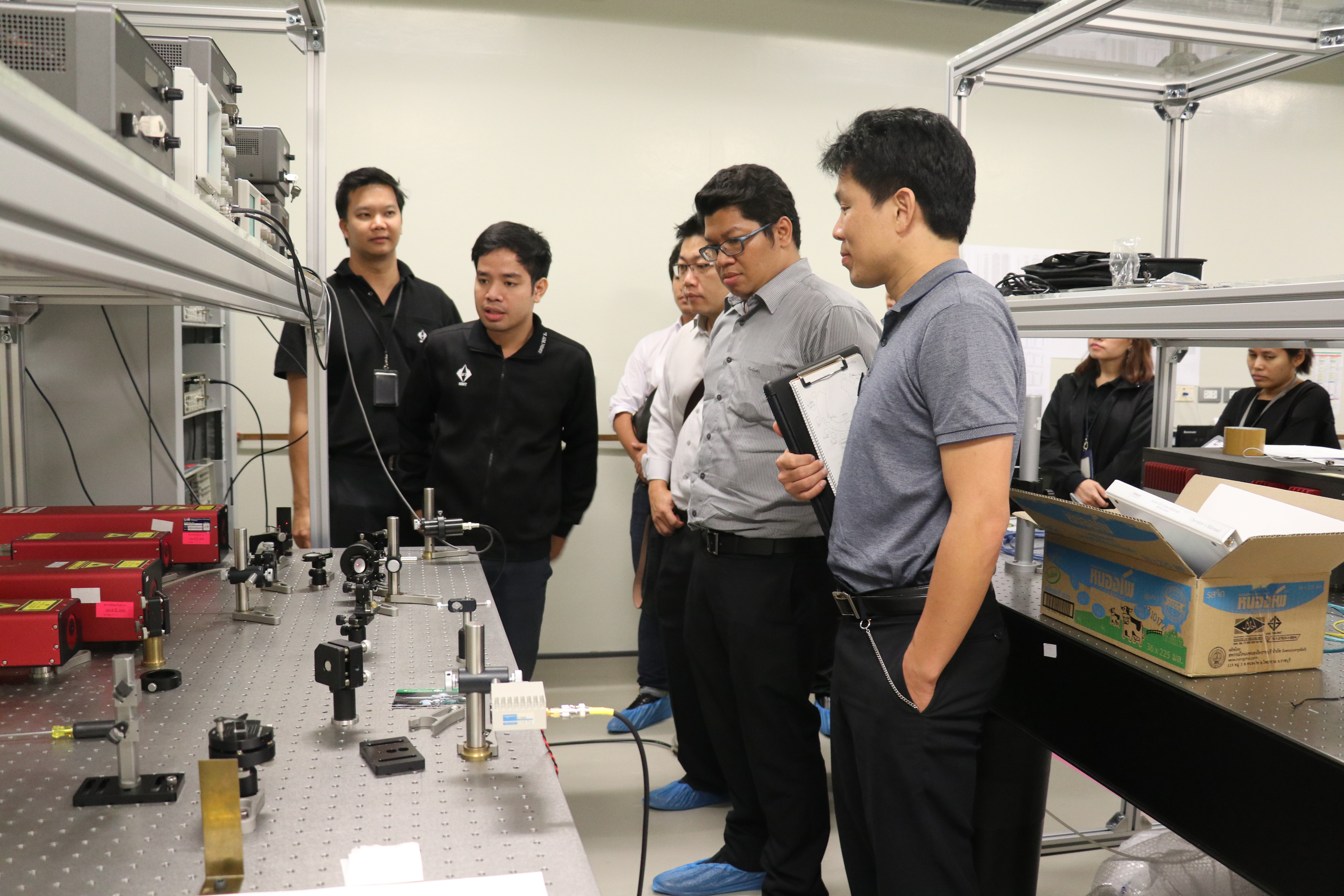 นายอนุสรณ์ ทนหมื่นไวย ผู้ช่วยผู้อำนวยการ มว. พร้อมนักมาตรวิทยา ฝ่ายมาตรวิทยามิติ ให้การต้อนรับคณะอาจารย์และนิสิต จากมหาวิทยาลัยเทคโนโลยีพระจอมเกล้าพระนครเหนือ และ Kyushu Institute of Technology ในโอกาสเข้าเยี่ยมชมห้องปฏิบัติการมาตรวิทยาสาขามิติ โดยมีวัตถุประสงค์เพื่อเป็นประโยชน์ในการศึกษา พัฒนา และปฏิบัติงานวิจัยในด้านมาตรวิทยาสาขามิติต่อไปในอนาคต ณ อาคารผดุงมาตร มว. จ.ปทุมธานี