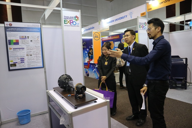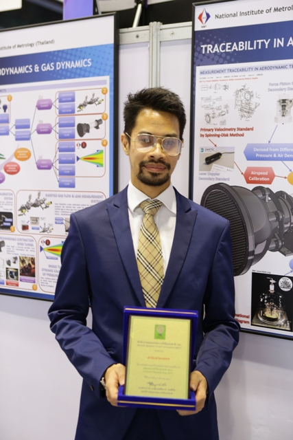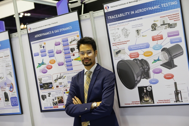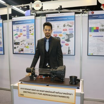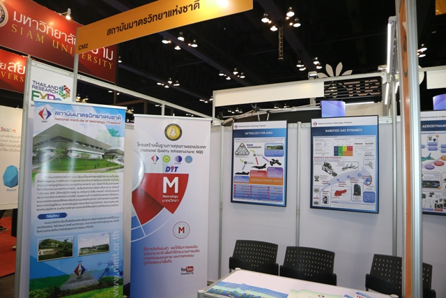 มว. ร่วมจัดแสดงนิทรรศการในงาน “มหกรรมงานวิจัยแห่งชาติ 2560” ที่จัดโดย สำนักงานคณะกรรมการวิจัยแห่งชาติ โดยมี ดร.จีระศักดิ์ พิทักษ์อรรณพ นักมาตรวิทยาชำนาญการ กลุ่มงานกลศาสตร์ของไหล ฝ่ายมาตรวิทยาเชิงกล ร่วมนำเสนอผลงานที่จัดอยู่ในประเภท งานวิจัยเพื่ออุตสาหกรรม ในหัวข้อ “เครื่องควบคุมการไหลระดับจุลภาค และเครื่องควบคุมความเร็วลมขนาดเล็กสำหรับงานทดสอบ และมาตรวิทยา” โดยมีวัตถุประสงค์เพื่อนำเสนอผลงานและเผยแพร่ผลงานด้านการวัดทางด้านอากาศพลศาสตร์และพลศาสตร์ของก๊าซกับมาตรวิทยา สู่ภาคส่วนต่างๆ ที่เกี่ยวข้องให้เป็นที่รู้จักในวงกว้าง และสามารถนำงานวิจัยไปต่อยอดและประยุกต์ใช้กับงานด้านการวัดของภาคอุตสาหกรรมต่างๆ ต่อไป ณ ห้องบางกอกคอนเวนชั่นเซ็นเตอร์ โรงแรมเซ็นทาราแกรนด์ เซ็นทรัลเวิลด์ กรุงเทพฯ