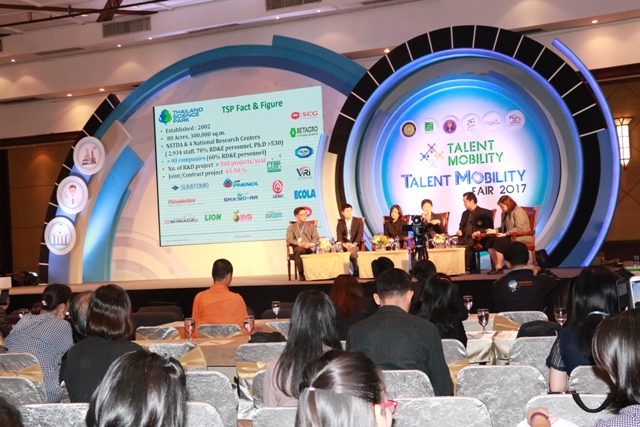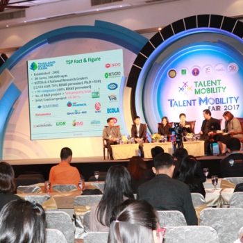 นายพรชัย ตระกูลวรานนท์ ผู้ช่วยรัฐมนตรีประจำกระทรวงวิทยาศาสตร์และเทคโนโลยี เป็นประธานเปิดงาน Talent Mobility for Fair 2017 พร้อมทั้งปาฐกถาพิเศษ เรื่อง “บทบาทของกระทรวงวิทยาศาสตร์และเทคโนโลยีกับการพัฒนากำลังคนสู่ Thailand 4.0” โดยมีผู้เข้าร่วมงาน ทั้งผู้ประกอบการจากภาคธุรกิจที่เกี่ยวข้องกับวิทยาศาสตร์ เทคโนโลยีและนวัตกรรม อาจารย์จากสถาบันอุดมศึกษา นักวิจัย และนักวิชาการจากหน่วยงานภาครัฐที่เกี่ยวข้องกับการวิจัยและพัฒนาทางวิทยาศาสตร์และเทคโนโลยี กว่า 400 คน ร่วมผลักดันและขับเคลื่อนโครงการ Talent Mobility ให้มีความก้าวหน้า ซึ่งจะเป็นกลไกหนึ่งที่จะช่วยเสริมสร้างขีดความสามารถทางการแข่งขันให้กับภาคอุตสาหกรรม เพื่อส่งผลให้ระบบเศรษฐกิจของประเทศไทยเติบโตได้อย่างยั่งยืนต่อไป ในโอกาสนี้ มว. ได้เข้าร่วมจัดแสดงนิทรรศการเพื่อประชาสัมพันธ์โครงการต่างๆ ภายใต้แนวความคิด “การสร้างระบบมาตรวิทยาให้เข้มแข็ง เพื่อโครงสร้างพื้นฐานทางคุณภาพของประเทศที่เป็นระบบและมีสมรรถนะสนับสนุนการสร้างนวัตกรรมยกระดับประเทศไทย สู่กลุ่มประเทศที่มีขีดความสามารถในการแข่งขันสูงและมีการพัฒนาที่ยั่งยืน” ณ ศูนย์การประชุมแห่งชาติสิริกิติ์ กรุงเทพฯ