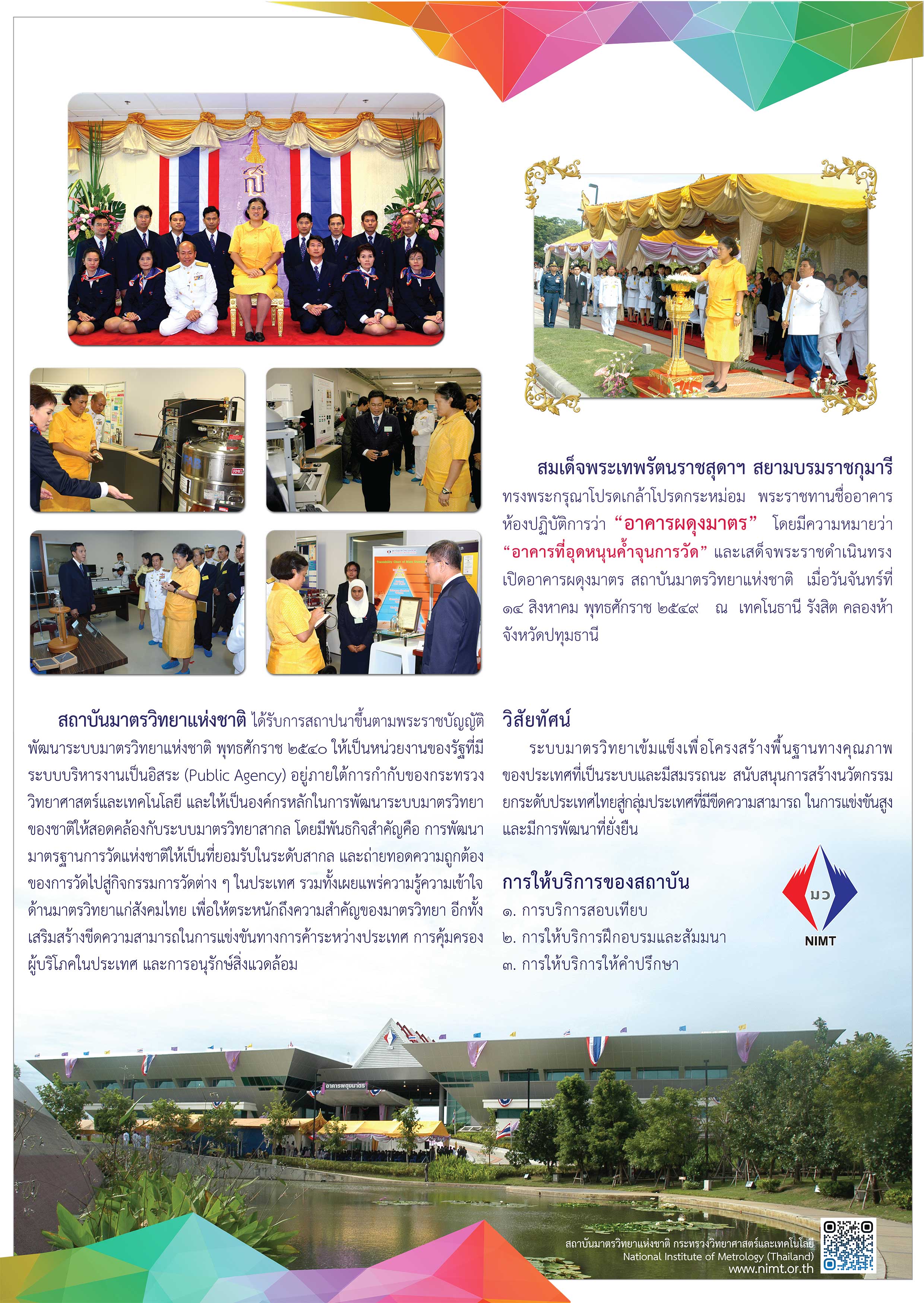 สถาบันมาตรวิทยาแห่งชาติ (มว.) เข้าร่วมจัดนิทรรศการในงาน วันนิทรรศการวิชาการ โรงเรียนนายร้อยพระจุลจอมเกล้า 2560 ที่จัดขึ้นเพื่อเป็นพื้นที่ในการเผยแพร่ผลงานวิจัยและโครงงานวิจัยของอาจารย์และบุคลากรของโรงเรียนนายร้อยพระจุลจอมเกล้า และหน่วยงานที่เกี่ยวข้อง เพื่อให้นิทรรศการวิชาการดังกล่าวมีส่วนส่งเสริม พัฒนา และขยายเครือข่ายความร่วมมือทางวิชาการระหว่างโรงเรียนนายร้อยพระจุลจอมเกล้ากับสถาบันการศึกษา และหน่วยงานต่างๆ ที่ได้ร่วมนำเสนอผลงาน โดยมีการนำเสนอผลงานเป็น 4 ส่วน ได้แก่ โครงการวิจัยของอาจารย์ โรงเรียนนายร้อยพระจุลจอมเกล้า, ศูนย์วิจัยสหวิทยาการ เฉลิมพระเกียรติ 5 รอบ พลเอกหญิงสมเด็จพระเทพรัตนราชสุดาฯ สยามบรมราชกุมารี โรงเรียนนายร้อยพระจุลจอมเกล้า, ผลงานและงานวิจัยของสถาบันภายนอก และโครงงานของนักเรียนนายร้อยพระจุลจอมเกล้า ในการนี้ นางอัจฉรา เจริญสุข ผู้อำนวยการ มว. และพนักงาน เข้าร่วมงานดังกล่าว โดยร่วมนำเสนอผลงานทางวิชาการ ได้แก่ มาตรวิทยากับความมั่นคงของชาติ มาตรวิทยาเวลาและความถี่, สถานีเวลารับสัญญาณจากระบบดาวเทียมนำทางสากล, และการถ่ายทอดมาตรฐานด้านเวลาและความถี่ในประเทศไทย เพื่อเป็นการประชาสัมพันธ์องค์ความรู้ต่างๆ รวมไปถึงการสร้างความรู้ ความเข้าใจ บทบาท หน้าที่ ภารกิจ ของสถาบันมาตรวิทยาแห่งชาติ ให้เป็นที่รู้จักในวงกว้าง เพื่อสร้างความรับรู้และสร้างความตระหนักให้สังคมได้รับทราบ และเห็นความสำคัญของงานด้านมาตรวิทยาที่เป็นรากฐานสำคัญในการพัฒนาประเทศทั้งทางด้านเศรษฐกิจ สังคม รวมไปถึงงานด้านความมั่นคงของชาติ ณ โรงเรียนนายร้อยพระจุลจอมเกล้า จ.นครนายก