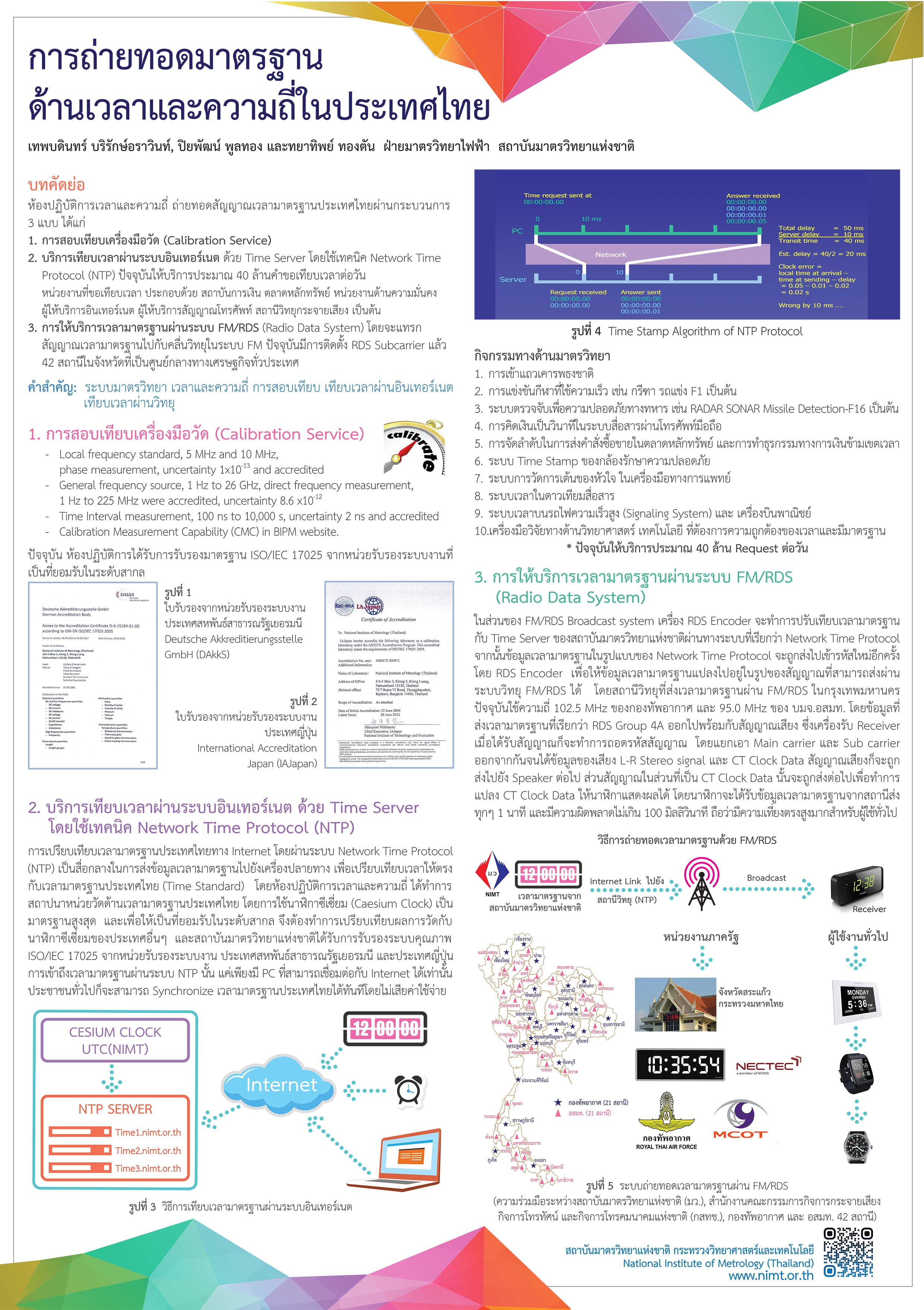 โปสเตอร์แสดงผลงาน โดยห้องปฏิบัติการเวลาและความถี่ ฝ่ายมาตรวิทยาไฟฟ้า มว.
