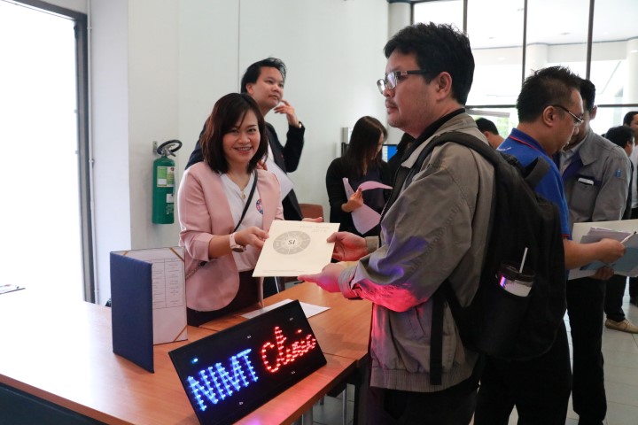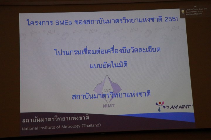 นางอัจฉรา เจริญสุข ผู้อำนวยการ มว. เป็นประธานเปิดงานสัมมนาวิชาการ “ก้าวสู่ไทยแลนด์ 4.0 ไปด้วยกันกับมาตรวิทยา” โดยในงานนี้ยังได้มีการบรรยายในหัวข้อ “โครงการพัฒนาผู้ประกอบการวิสาหกิจขนาดกลางและขนาดย่อม (SMEs) และอุตสาหกรรมศักยภาพด้วยเทคโนโลยีมาตรวิทยา โดยนายอนุสรณ์ ทนหมื่นไวย ผู้ช่วยผู้อำนวยการ มีการเสวนา : มาตรวิทยาช่วยเพิ่มผลิตภาพได้อย่างไร จากผู้ประกอบการ ได้แก่ นางชญานี แพรพริ้วงาม กรรมการและผู้จัดการทั่วไป บริษัท วี เอ็ม ซี เซฟตี้กลาส (ประเทศไทย) จำกัด และคุณกฤษดา บินฮาซัน กรรมการ บริษัท แกรนด์ โพรไลน์ มาร์เก็ตติ้ง (GPM) จำกัด นอกจากนี้ยังมีการนำเสนอเทคโนโลยีและนวัตกรรมมาตรวิทยา การบรรยายในหัวข้อ “การเปลี่ยนนิยามหน่วยฐาน SI และ การเตรียมความพร้อมของห้องปฏิบัติการสู่ ISO/IEC 17025:2017” บรรยายโดยนางอัจฉรา เจริญสุข ผู้อำนวยการ มว. และ “แนวทางการจัดทำ Guideline เพื่อประกอบการตรวจประเมินทางเทคนิค บรรยายโดย ดร.สิวินีย์ สวัสดิ์อารี หัวหน้าฝ่ายมาตรวิทยาไฟฟ้า การสัมมนาวิชาการในครั้งนี้ได้รับความสนใจจากผู้ประกอบการเป็นอย่างมาก ณ อาคารสำนักงานกลาง มว. จ.ปทุมธานี