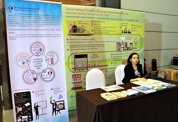 สถาบันมาตรวิทยาแห่งชาติ (มว.) ร่วมจัดนิทรรศการแสดงผลงานในงานเสวนาโครงสร้างพื้นฐานด้านคุณภาพของประเทศ (NQI) “ปลดล็อคธุรกิจด้วยบริการวิเคราะห์ทดสอบและให้การรับรอง” ที่จัดโดย สำนักงานพัฒนาวิทยาศาสตร์และเทคโนโลยีแห่งชาติ (สวทช.) โดยมีนายปฐม สวรรค์ปัญญาเลิศ รองปลัดกระทรวงวิทยาศาสตร์และเทคโนโลยี เป็นประธานกล่าวเปิดงานพร้อมทั้งบรรยายพิเศษ “กุญแจดอกสำคัญ สู่ประเทศไทยยุค 4.0 ” และต่อด้วยการเสวนาพิเศษ “ประสบการณ์ ความต้องการ NQI จากภาคอุตสาหกรรม ” โดยมีวิทยากรผู้ทรงคุณวุฒิ ทั้งจากภาครัฐและเอกชน ร่วมบรรยายให้ความรู้ พร้อมทั้งเปิดโอกาสให้ผู้เข้าร่วมงาน ได้เข้าเยี่ยมชมห้องปฏิบัติการ ด้านงานวิเคราะห์ และทดสอบ ในโอกาสนี้มว.ได้นำเสนอผลงานนิทรรศการแนะนำหน่วยงานพร้อมทั้งประชาสัมพันธ์แผนการดำเนินงานในแผนแม่บทพัฒนาระบบมาตรวิทยาแห่งชาติฉบับที่ 3 ที่มุ่งไปสู่การพัฒนาความสามารถทางการแข่งขันของไทยในตลาดโลกให้สูงขึ้นพร้อมทั้งร่วมให้ความรู้และตัวอย่างในการพัฒนาโครงสร้างพื้นฐานทางคุณภาพของประเทศด้วยงานด้านมาตรวิทยา งานวิเคราะห์ทดสอบ และให้การรับรองคุณภาพ ณ ห้องแกรนด์ฮอล์ ศูนย์ประชุมอุทยานวิทยาศาสตร์ประเทศไทย สวทช. จ. ปทุมธานี