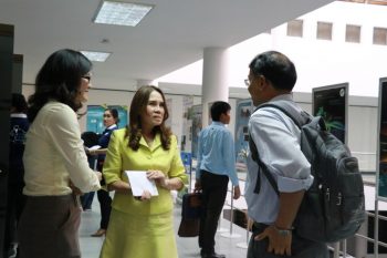 - นางอัจฉรา เจริญสุข ผู้อำนวยการ มว. พร้อมด้วย ดร.ทยาทิพย์ ทองตัน นักมาตรวิทยาชำนาญการ สนทนากับ ดร.ปณิธาน ศรีนวลดี GIS Business Analyst Manager, TCC-Technology Co., Ltd.