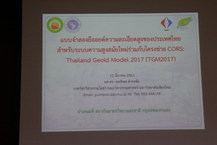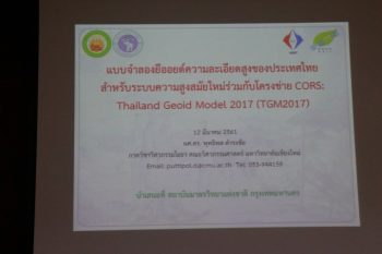 - การสัมมนาเชิงปฏิบัติการเรื่อง การใช้งานโครงข่ายสถานีฐานอ้างอิงรับสัญญาณจากระบบดาวเทียมนำทางสากลแบบต่อเนื่อง (CORS) เพื่อการบริหารจัดการน้ำและภัยพิบัติ รวมถึงการประยุกต์ใช้งานในด้านต่าง ๆ รุ่นที่ 2