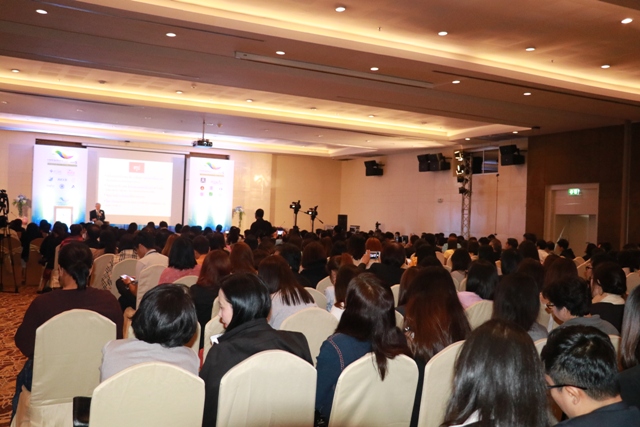 - นพ.ศักดิ์ชัย กาญจนวัฒนา เลขาธิการสำนักงานหลักประกันสุขภาพแห่งชาติ กล่าวรายงานการจัดงาน