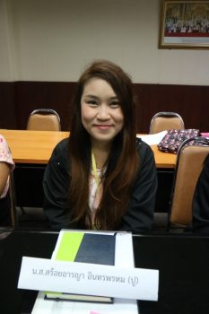 - นางสาวสร้อยอารญา อินทรพรหม พนักงานธุรการ กลุ่มงานสารบรรณและการประชุม