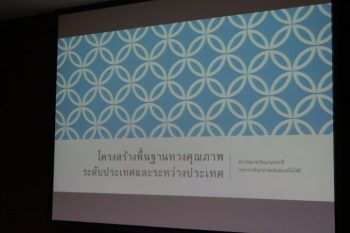 - โครงสร้างพื้นฐานทางคุณภาพระดับประเทศและระหว่างประเทศ บรรยายโดยนางอัจฉรา เจริญสุข ผู้อำนวยการ มว.