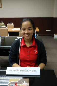 - นางสาวหยกฟ้า ศุภฤกษ์โอฬาร พนักงานธุรการ กลุ่มงานถ่ายทอดค่ามาตรฐานและความชื้น ฝ่ายมาตรวิทยาอุณหภูมิและแสง