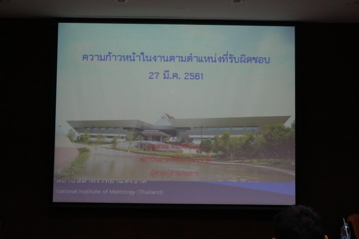 - ความก้าวหน้าในงานตามตำแหน่งที่รับผิดชอบ บรรยายโดยนายอนุสรณ์ ทนหมื่นไวย ผู้ช่วยผู้อำนวยการ มว.