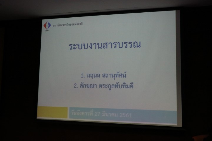 - ระบบงานสารบรรณ บรรยายโดย นางสาวนฤมล สถานุทัศน์ พนักงานสารบรรณชำนาญกการ และนางสาวลักขณา ตระกูลทับทิมดี พนักงานสารบรรณชำนาญการ กลุ่มงานสารบรรณและการประชุม