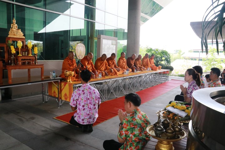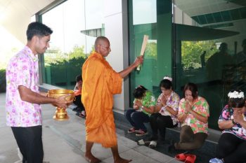 - พนักงานร่วมรดน้ำ ขอพรจากผู้บริหาร มว.