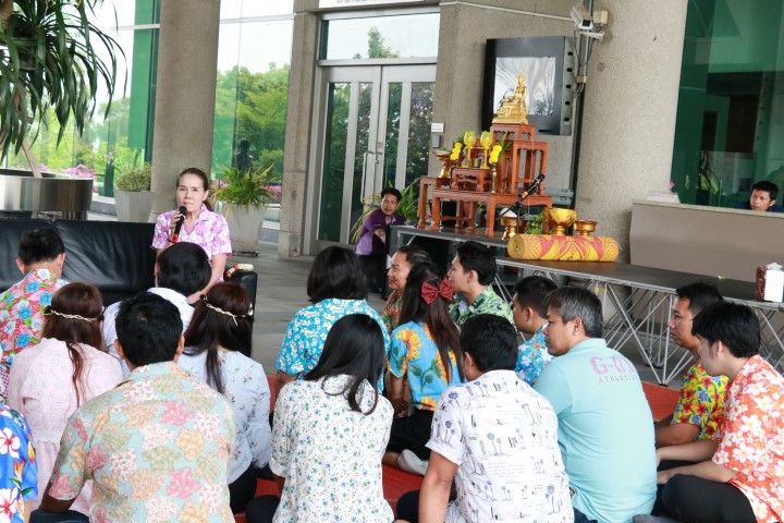 - นางอัจฉรา เจริญสุข ผู้อำนวยการ มว. ให้พรแก่พนักงาน เนื่องในวันสงกรานต์ฺ การขึ้นปีใหม่ในแบบไทย