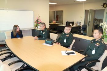 นางอัจฉรา เจริญสุข ผู้อำนวยการ มว. พร้อมผู้บริหาร ให้การต้อนรับคณะของสำนักมาตรฐานทางทหาร กรมวิทยาศาสตร์และเทคโนโลยีกลาโหม ในโอกาสเข้าประชุมหารือความร่วมมือด้านการมาตฐานทางทหาร ระหว่างกระทรวงกลาโหมและสถาบันมาตรวิทยาแห่งชาติ กระทรวงวิทยาศาสตร์และเทคโนโลยี โดยมีวัตถุประสงค์เพื่อสร้างความร่วมมือ ส่งเสริมและสนับสนุนด้านการพัฒนาบุคลากร ทรัพยากร โครงสร้างพื้นฐาน และการให้บริการต่าง ๆ ที่เกี่ยวข้องกับงานด้านมาตรวิทยา โดยมุ่งเน้นให้เกิดประโยชน์สูงสุดต่อประเทศชาติ ตามนโยบายของรัฐบาล ณ อาคารผดุงมาตร มว. จ.ปทุมธานี