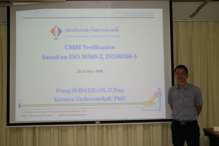 ส่วนฝึกอบรม กลุ่มงานพัฒนาธุรกิจ ฝ่ายนโยบายและยุทธศาสตร์ จัดอบรมประจำปี 61 ภายใต้หัวข้อ การทวนสอบซีเอ็มเอ็มตามมาตรฐาน ISO 10360-2, ISO 10360-5 บรรยายให้ความรู้แก่ผู้เข้าอบรมจากหน่วยทั้งจากภาครัฐ เอกชน และอุตสาหกรรม โดยดร.วิโรจน์ สุดาธรรม นักมาตรวิทยาชำนาญการ ห้องปฏิบัติการระยะพิกัด กลุ่มงานวิศวกรรมการวัดละเอียด และดร.เกษญา วัชระนุกุล หัวหน้ากลุ่มงานวิศวกรรมการวัดละเอียด ฝ่ายมาตรวิทยามิติ โดยมีวัตถุประสงค์เพื่อให้ผู้เข้าอบรมเข้าใจมาตรฐาน ISO 10360 การยอมรับผลทดสอบของซีเอ็มเอ็ม หลักการทวนสอบและสอบเทียบซีเอ็มเอ็ม รวมทั้งสามารถวิเคราะห์ข้อมูลผลการทดสอบได้อีกด้วย ณ อาคารสำนักงานกลาง มว. จ.ปทุมธานี