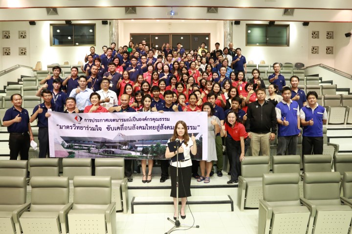 - นางอัจฉรา เจริญสุข ผู้อำนวยการ มว. นำผู้บริหารและพนักงาน มว. แสดงเจตนารมณ์ร่วมกัน
