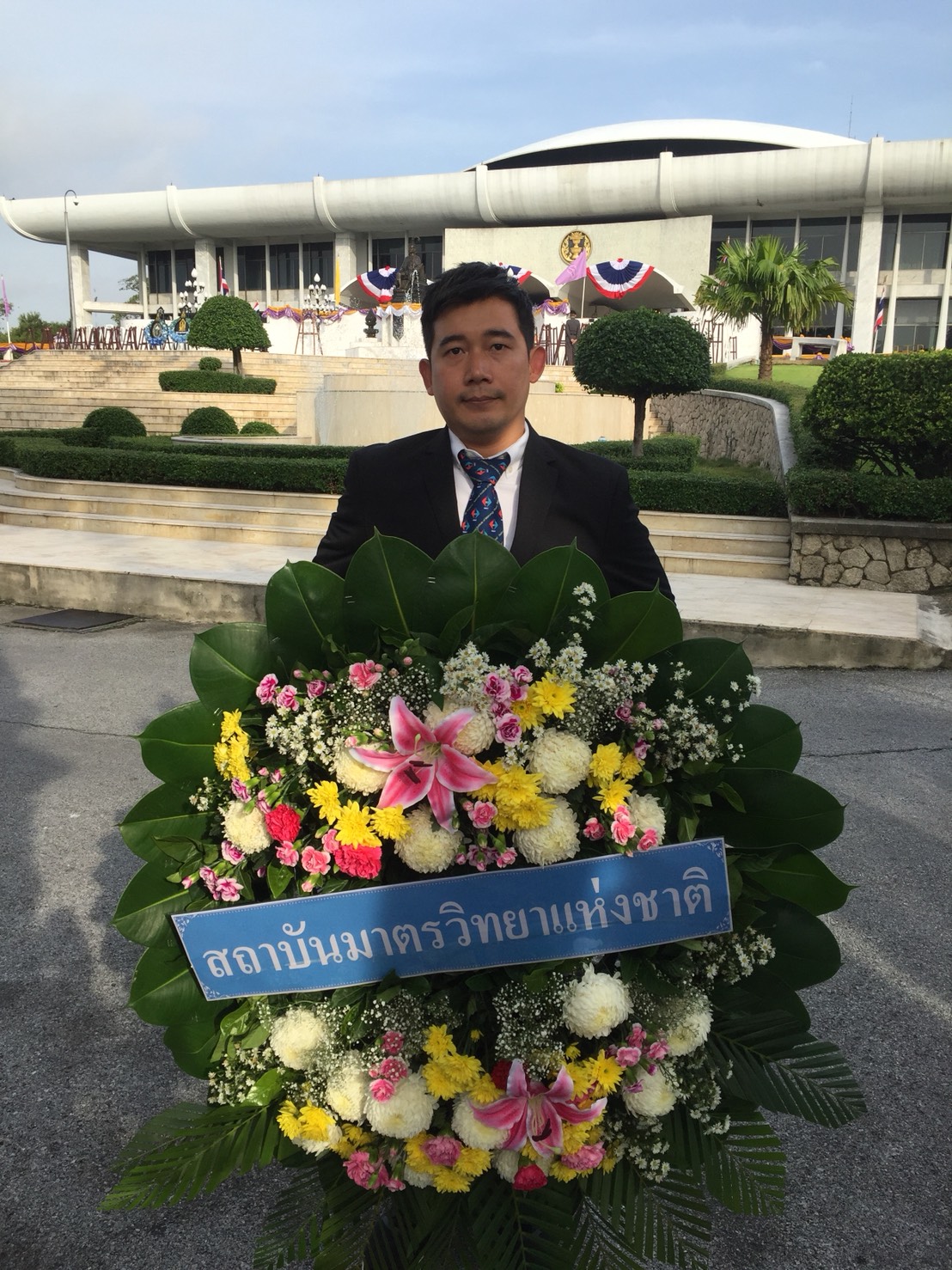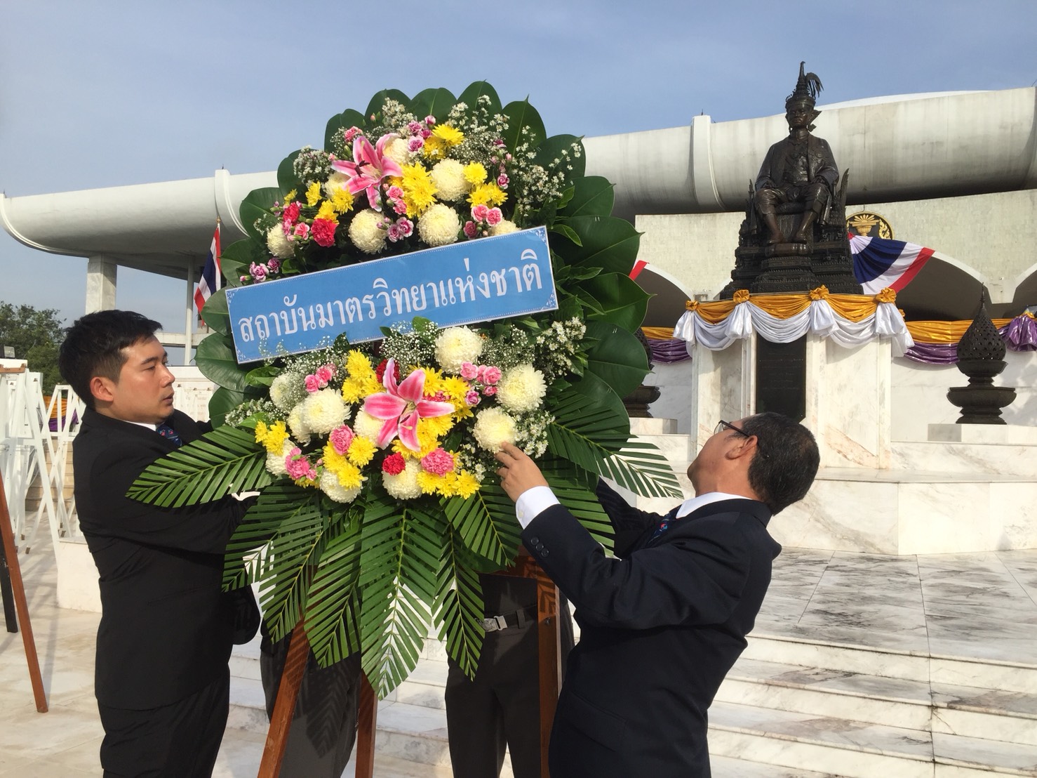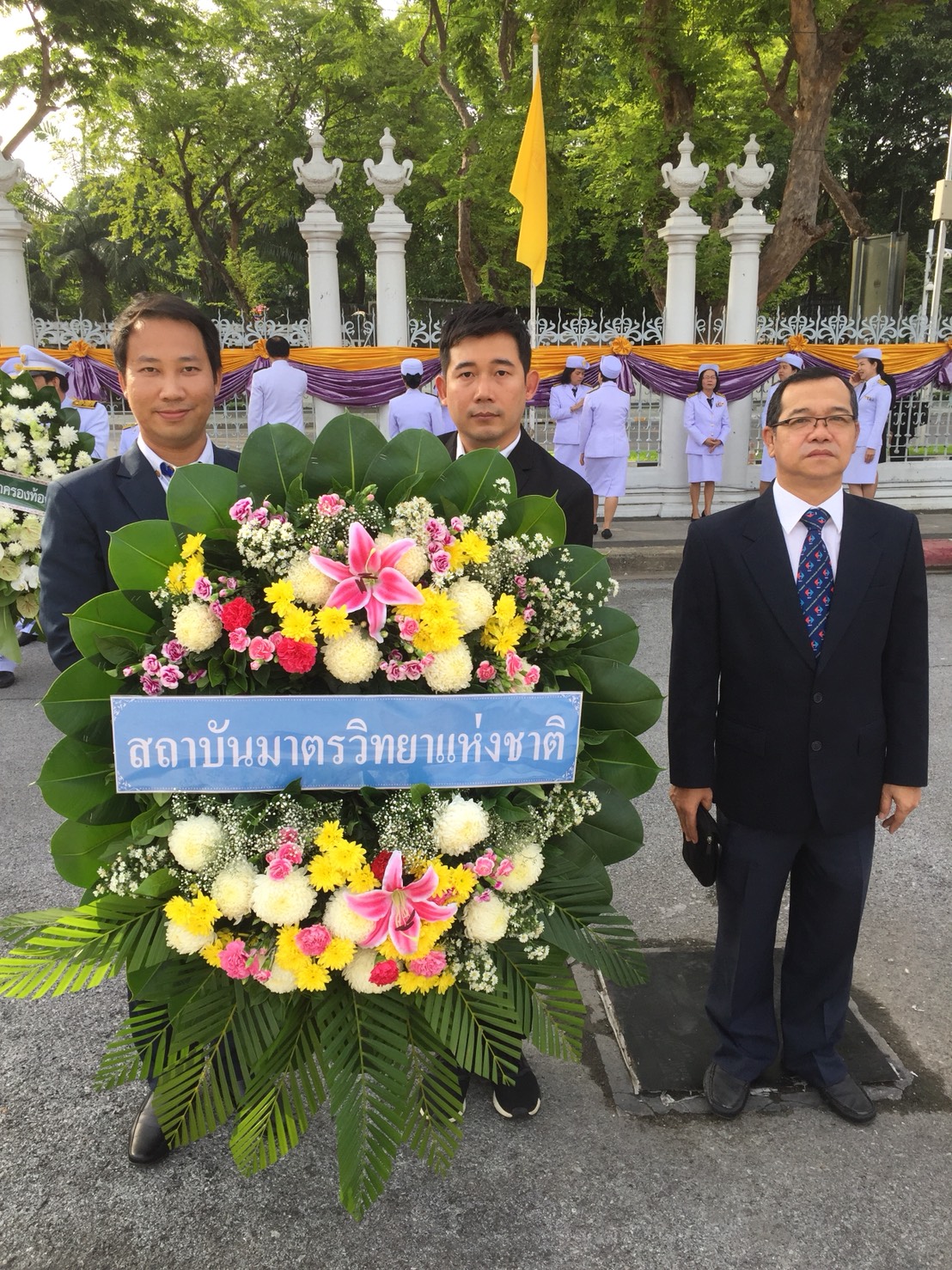 - นายปฐมพงษ์ กิตติสาร พนักงานบริหารงานบุคคลชำนาญการ นายธุุรรมนูญ เขียวสลับ และนายพัมฯพงษ์ อ่อนสำลี พนักงานบริหารงานบุคคลปฏิบัติการ ตัวแทนเข้าร่วมพิธีวางพวงมาลาฯ