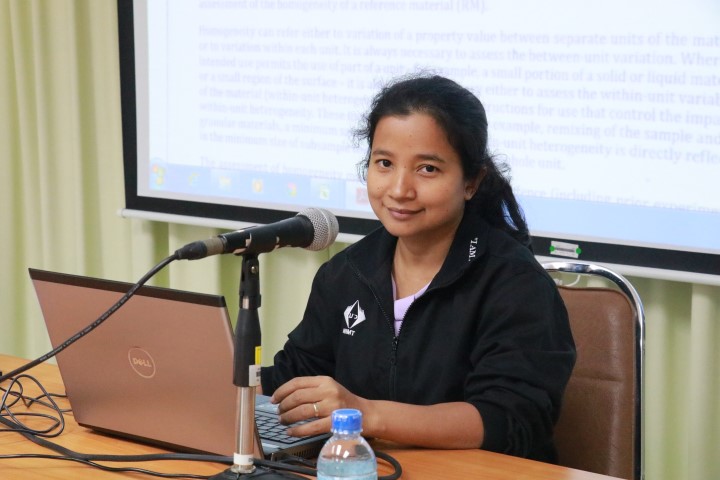 ดร.จรัญ ยะฝา หัวหน้าฝ่ายมาตรวิทยาเคมีและชีวภาพ และนักมาตรวิทยา ให้การต้อนรับ ผศ.ดร.วันวิสาข์ ตรีบุพชาติสกุล หัวหน้าโครงการวิจัย การพัฒนากรรมวิธีการเตรียมวัสดุทดสอบ และการทดสอบความชำนาญทางห้องปฏิบัติการในประเทศไทยตามมาตรฐาน ISO/IEC17043 คณะสหเวชศาสตร์ มหาวิทยาลัยนเรศวร โดยมีวัตถุประสงค์เพื่อเป็นการสร้างความร่วมมือและเครือข่ายในการผลิต CRM และ PTทางด้านการแพทย์ และให้คณะวิจัยมีความเข้าใจทางสถิติในการวิเคราะห์ข้อมูล สถาที่ในการผลิตเพิ่มมากขึ้น รวมทั้งถ่ายทอดเทคโนโลยีและหารือเพื่อสร้างความร่วมมือในการผลิต CRM และ PT ทางด้านการแพทย์ ณ อาคารพัฒนาและผลิตวัสดุอ้างอิงรับรอง มว. จ.ปทุมธานี