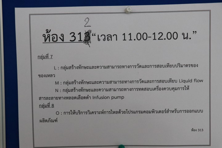 - กลุ่มที่ 7 กลุ่มสร้างทักษะและความสามารถทางการวัดและารสอบเทียบปริมาตรของของเหลว การสอบเทียบ Liquid Flow รวมถึงกลุ่มสร้างทักษะและความสามารถทางการทดสอบเครื่องควบคุมการห้สารละลายทางหลอดเลือดดำ Infusion pump