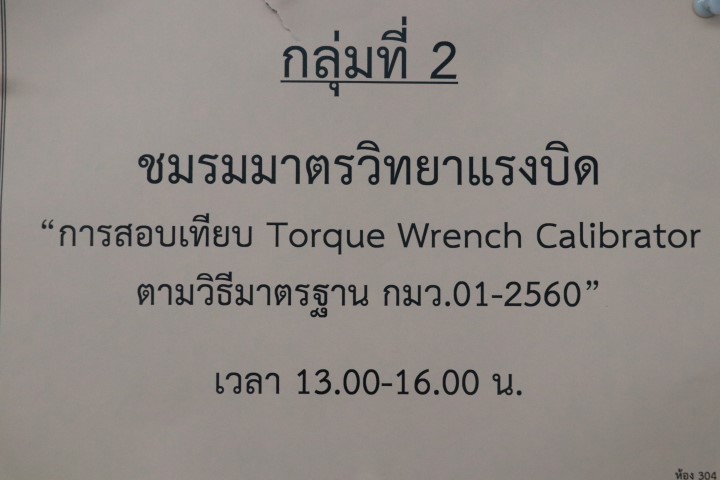 - กลุ่มที่ 2 ชมรมมาตรวิทยาแรงบิด บรรยายหัวข้อ “การสอบเทียบ Torque Wrench Calibrator ตามวิะีมาตรฐาน กมว.1-2560” โดย นายณัฐพล แสนคำ