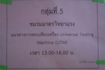 - กลุ่มที่ 5 ชมรมมาตรวิทยาแรง หัวข้อบรรยายเรื่อง แนวทางการสอบเทียบเครื่อง Universal Testing Machine (UTM) โดยนายกิตติพงศ์ ชะเอมเทศ นักมาตรวิทยาชำนาญการ ห้องปฏิบัติการแรง ฝ่ายมาตรวิทยาเชิงกล
