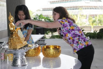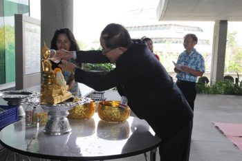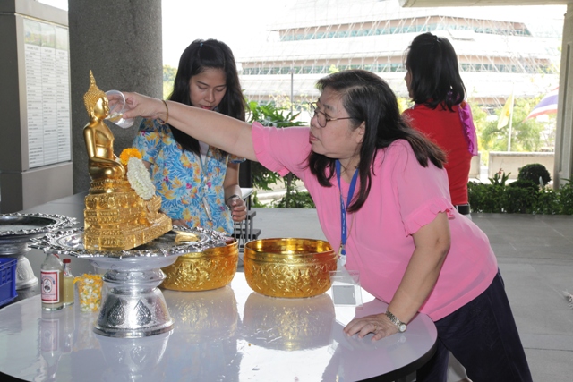 นายประยูร เชี่ยววัฒนา ผู้อำนวยการ มว. เป็นประธานในพิธีทำบุญตักบาตรและรดน้ำขอพรเนื่องในเทศกาลวันสงกรานต์ ซึ่งถือเป็นวันสำคัญอีกวันหนึ่งของคนไทย เนื่องจากเป็นการเฉลิมฉลองการขึ้นปีใหม่แบบไทย โดยมีคณะผู้บริหารและพนักงาน มว. ร่วมพิธี ณ อาคารผดุงมาตร มว. จ.ปทุมธานี