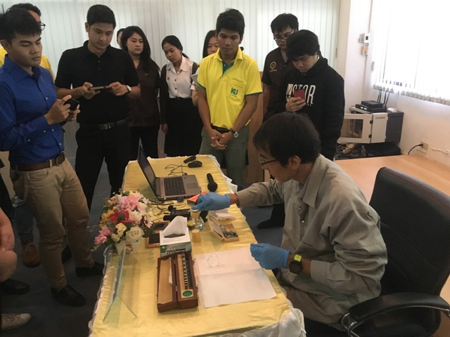 นางอัจฉรา เจริญสุข ผู้อำนวยการ มว. พร้อมด้วยผู้บริหารและนักมาตรวิทยา จัดอบรมหลักสูตรสมรรถนะทางด้านมาตรวิทยาของนักวิทยาศาสตร์และวิศวกรโรงงานขึ้นสำหรับฝึกอบรมให้แก่นักศึกษา ซึ่งเป็นความร่วมมือเพื่อการพัฒนาระบบมาตรวิทยา ระหว่าง สถาบันมาตรวิทยาแห่งชาติ กับ มหาวิทยาลัยเกษตรศาสตร์ โดย นางอัจฉรา เจริญสุข ผู้อำนวยการ มว.บรรยายในหัวข้อ “มาตรวิทยาและระบบคุณภาพ” ดร.ชัยวัฒน์ เจษฎาจินต์ นักมาตรวิทยาชำนาญการพิเศษ (ฝฟ.) บรรยายในหัวข้อ “มาตรวิทยาและการจัดการเครื่องมือวัด” ดร.นฤดม นวลขาว พนักงานประสานงานอบรมชำนาญการ (ฝน.) บรรยายในหัวข้อ “ความไม่แน่นอนในการวัดเบื้องต้น” ดร.ศริญญา ปะสะกวี นักมาตรวิทยาชำนาญการ (ฝฟ.) บรรยายในหัวข้อ “การสอบเทียบออสซิลโลสโคปเบื้อง” นายเจษฏา วงศาโรจน์ นักมาตรวิทยาชำนาญการ (ฝม.) บรรยายในหัวข้อ “การสอบเทียบเวอร์เนียคาลิปเปอร์และไมโครมิเตอร์เบื้องต้น” และ นายลิขิต ใสหนู นักมาตรวิทยาชำนาญพิเศษ (ฝช.) บรรยายในหัวข้อ “มาตรวิทยาความดันเบื้องต้น” โดยมีวัตถุประสงค์เพื่อร่วมกันพัฒนาและจัดการหลักสูตรด้านมาตรวิทยาให้แก่นิสิต และบุคคลากรของมหาลัยเกษตรศาสตร์ รวมถึงบุคลากรภายนอกที่สนใจในหลักสูตรด้านมาตรวิทยา ณ ห้องประชุม 3 ชั้น 2 อาคารปฏิบัติการวิศวกรรมศาสตร์ มหาวิทยาลัยเกษตรศาสตร์ วิทยาเขตศรีราชา จังหวัดชลบุรี
