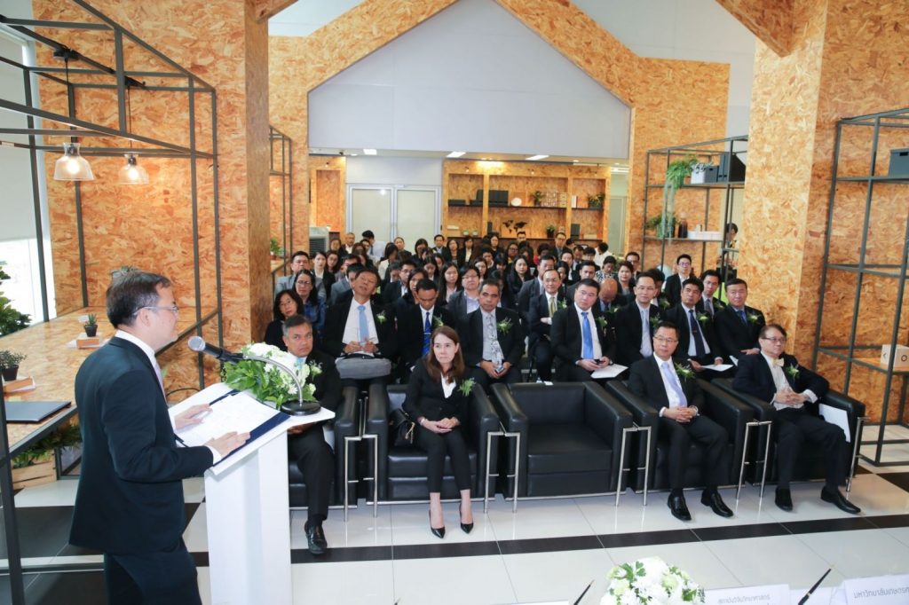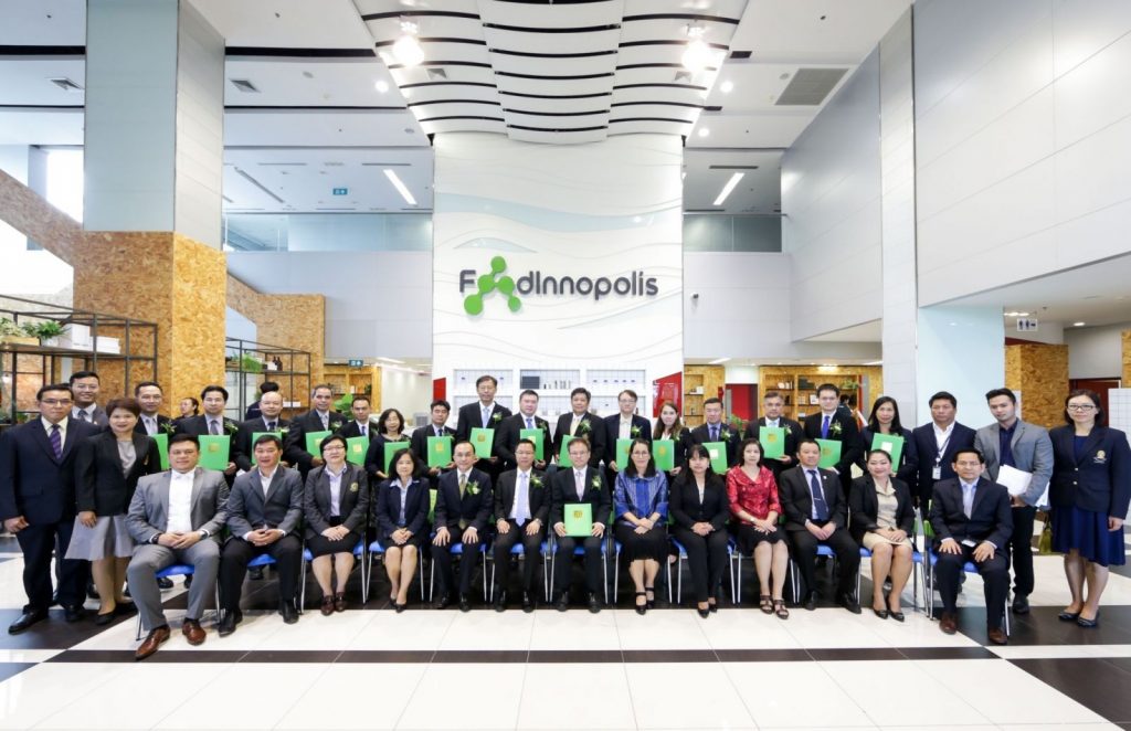 นางอัจฉรา เจริญสุข ผู้อำนวยการ มว. พร้อมด้วยผู้บริหารจากสถาบันเทคโนโลยีนิวเคลียร์แห่งชาติ (สทน.) สถาบันวิทยาศาสตร์และเทคโนโลยีแห่งประเทศไทย (วว.) ซึ่งเป็นหน่วยงานในเทคโนธานี และสำนักงานคณะกรรมการนโยบายวิทยาศาสตร์ เทคโนโลยีและนวัตกรรมแห่งชาติ (สวทน.) โดยโครงการเมืองนวัตกรรมอาหารหรือฟู้ดอินโนโพลิส ร่วมลงนามความร่วมมือกับ 13 มหาวิทยาลัยทั่วประเทศ ซึ่งการขยายเมืองนวัตกรรมอาหารไปสู่พื้นที่ที่มีศักยภาพ โดยความร่วมมือของมหาวิทยาลัยทั่วประเทศ ตลอดจนภาครัฐ หน่วยงานวิจัย และภาคอุตสาหกรรมให้เกิดการถ่ายทอดเทคโนโลยี และแลกเปลี่ยนความรู้ เพื่อส่งเสริมศักยภาพและขีดความสามารถของอุตสาหกรรมอาหาร และอุตสาหกรรมที่เกี่ยวเนื่องของประเทศ ขณะเดียวกันก็จะเป็นการผลิตสินค้าและบริการที่มีมูลค่าเพิ่มต่ำไปสู่สินค้าและบริการที่มีมูลค่าเพิ่มสูง มีมาตรฐาน และตอบโจทย์รสนิยมของผู้บริโภคทั่วประเทศ ณ อุทยานวิทยาศาสตร์แห่งประเทศไทย จ.ปทุมธานี