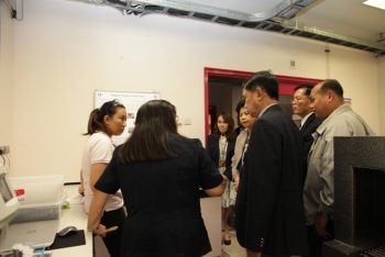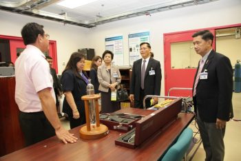 นายประยูร เชี่ยววัฒนา ผู้อำนวยการ มว. พร้อมผู้บริหาร ให้การต้อนรับคณะกรรมาธิการวิสามัญพิจารณาร่างพระราชบัญญัติพัฒนาระบบมาตรวิทยาแห่งชาติ ในโอกาสเข้ารับฟังการบรรยายและเยี่ยมชมห้องปฏิบัติการเคมีและชีวภาพ ห้องปฏิบัติการเวลาและความถี่ และห้องปฏิบัติการอุณหภูมิของสถาบัน โดยมีวัตถุประสงค์เพื่อศึกษา ทำความเข้าใจเกี่ยวกับการปฏิบัติงานทางด้านมาตรวิทยา อันจะเป็นประโยชน์ต่อการพิจารณาร่างพระราชบัญญัติพัฒนาระบบมาตรวิทยาแห่งชาติได้มากยิ่งขึ้น ณ อาคารผดุงมาตร มว. จ.ปทุมธานี