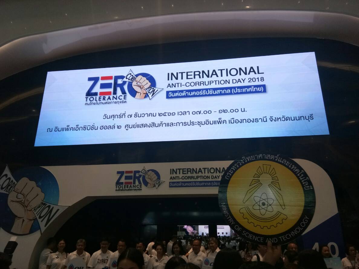 วันต่อต้านการทุจริตสากล หรือ วันต่อต้านคอร์รัปชันสากล (International Anti=Corruption Day) ถือกำเนิดขึ้นหลังจากที่ประชุมใหญ่สมัชชาสหประชาชาติ (UN) มีมติเห็นชอบอย่างเป็นเอกฉันเมื่อวันที่ 31 ตุลาคม 2546 จากนั้นประเทศภาคีสมาชิก 191 ประเทศรวมถึงประเทศไทย ได้เข้าร่วมลงนามในอนุสัญญา ด้วยเหตุนี้ UN จึงประกาศให้วันที่ 9 ธันวาคมของทุกปีเป็น วันต่อต้านคอร์รัปชันสากล ในปีนี้ สำนักงานคณะกรรมการป้องกันและปราบปรามการทุจริตแห่งชาติ (สำนักงาน ป.ป.ช.) จัดงาน “วันต่อต้านคอร์รัปชันสากล (ประเทศไทย) ขึ้น โดยมีวัตถุประสงค์เพื่อสร้างความตระหนักของผู้คนในเรื่องการทุจริต อันส่งผลกระทบต่อทั้งความมั่นคงของรัฐบาล เป็นตัวถ่วงการพัฒนาเศรษฐกิจของประเทศ ทั้งยังทำลายรากฐานของประชาธิปไตย และสร้างความตระหนักในบทบาทของหนุสัญญาสหประชาชาติว่าด้วยการต่อต้านการทุจริตในการต่อสู้และป้องกัน ในการนี้นายทศพร เอียดคง หัวหน้ากลุ่มงานบริหารและพัฒนาทรัพยากรบุคคล และนายมาณพ ติณสิริสุข พนักงานตรวจสอบภายในชำนาญการพิเศษ ได้เข้าร่วมกิจกรรมดังกล่าวในนามของสถาบันมาตรวิทยาแห่งชาติ ณ ศูนย์แสดงสินค้าและการประชุมอิมแพ็คเมืองทองธานี จ.นนทบุรี