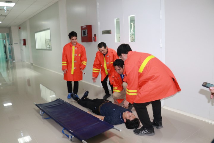 บรรยากาศในการฝึกซ้อมการอพยพหนีไฟ การเคลื่อนย้ายผู็ประสบภัย ณ อาคารสำนักงานกลาง