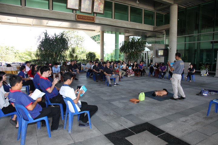 บรรยากาศในการฝึกซ้อม/สาธิตการใช้เครื่องมือและวิธีดับเพลิง พร้อมทั้งการปฐมพยาบาลและการช่วยชีวิต ณ อาคารผดุงมาตร