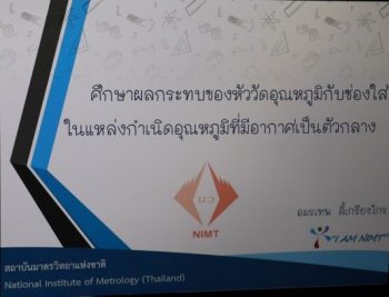 - หัวข้อบรรยาย ศึกษาผลกระทบของหัววัดอุณหภูมิกับช่องใส่ ในแหล่งกำเนิดอุณหภูมิที่มีอากาศเป็นตัวกลาง (ผลกระทบของขนาด Thermometer well และ probe สำหรับ Dry block)