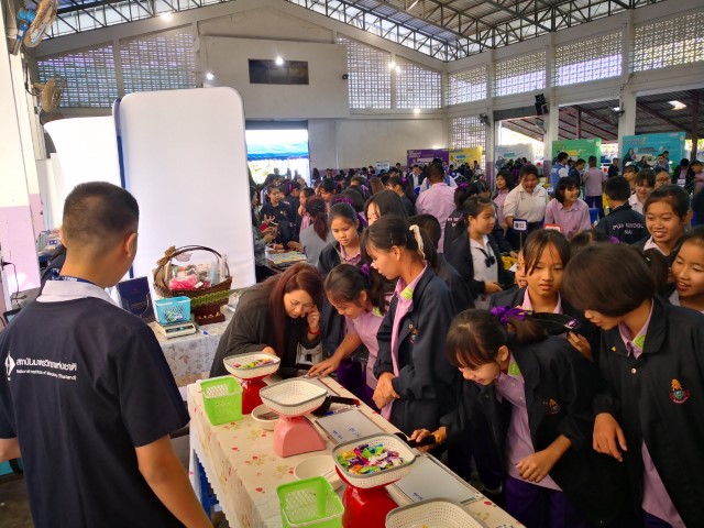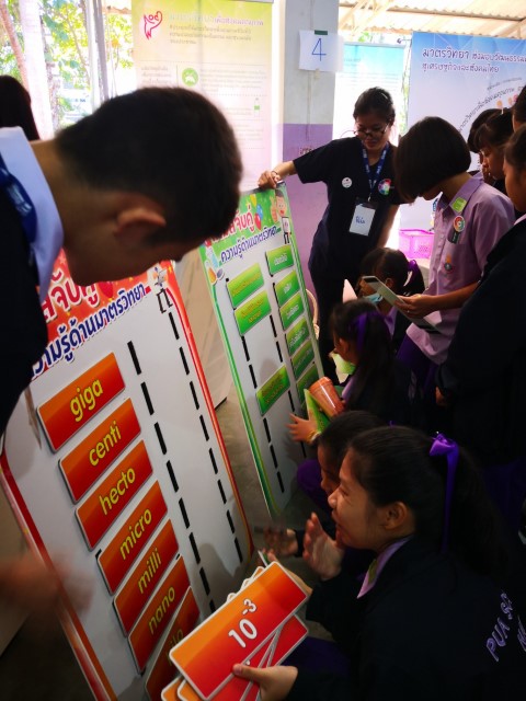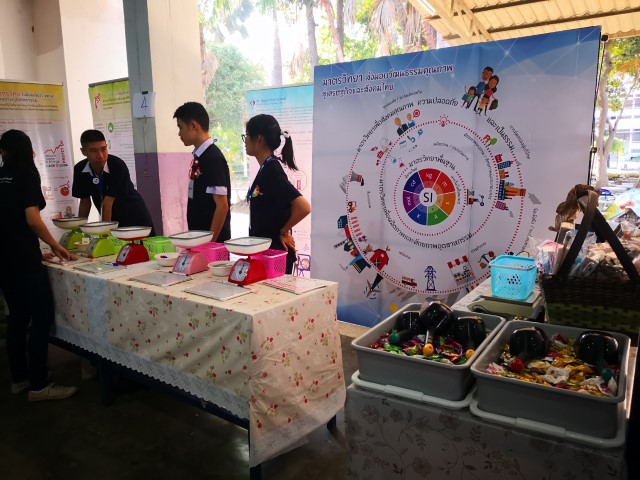 ในโอกาสนี้ มว.ได้ร่วมแสดงนิทรรศการความรู้ด้านมาตรวิทยาในเรื่องหน่วยวัดเอสไอที่ประกอบไปด้วยหน่วยวัดพื้นฐานทั้ง 7 หน่วย ได้แก่ เมตร กิโลกรัม วินาที โมล เคลวิน แคนเดลา แอมแปร์ ที่เป็นรากฐานสำคัญในการพัฒนางานด้านการวัดของไทย พร้อมทั้งแนะนำบทบาท หน้าที่ของสถาบันมาตรวิทยาแห่งชาติในด้านการพัฒนาต่างๆ อาทิ การวัดเพื่อการรองรับเทคโนโลยีใหม่ การวัดเพื่อพัฒนาศักยภาพของอุตสาหกรรม และการวัดเพื่อพัฒนาคุณภาพชีวิตและสังคม โดยผ่านกิจกรรม และเกมในรูปแบบที่สนุกสนาน ได้สาระความรู้ควบคู่ไปกับความเพลิดเพลิน เพื่อกระตุ้นและสร้างความตระหนักให้เยาวชน คนรุ่นใหม่ได้เข้าใจงานด้านการวัดให้มากขึ้นอย่างเป็นรูปธรรม พร้อมทั้งร่วมลุ้นรับของรางวัลมากมายที่ช่วยสร้างความสนใจให้เด็กๆ หันมาสนใจในงานด้านมาตรวิทยา และวิทยาศาสตร์ในแขนงต่างๆ ให้มากขึ้น ณ โรงเรียนปัว จ.น่าน