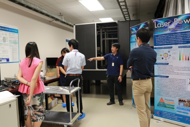 ดร.สิวินีย์ สวัสดิ์อารี หัวหน้าฝ่ายมาตรวิทยาไฟฟ้า และนางสาวจรวยรัตน์ เหย่ากุลบดี รักษาการหัวหน้าฝ่ายมาตรวิทยาอุณหภูมิและแสง พร้อมด้วยนักมาตรวิทยา ฝ่ายมาตรวิทยาอุณภูมิและแสง ให้การต้อนรับเจ้าหน้าที่จากหน่วยผิวหนัง โรงพยาบาลจุฬาลงกรณ์ สภากาชาดไทย นำโดย ศ.นพ.ประวิตร อัศวานนท์ พร้อมด้วย อ.พญ.ไอณภัค อำนาจตระกูล นายอณุกร ศรีอร่าม และนางสาวจารุวรรณ เพิ่มเจริญ ในโอกาสรับฟังบรรยาย ปรึกษาหารือ แลกเปลี่ยนองค์ความรู้เกี่ยวกับงานวิจัยที่จะนำแสงมาประยุกต์ใช้ในการรักษาผู้ป่วยในอนาคต และพัฒนาเครื่องมือวัดที่มีอยู่ในโรงพยาบาลให้เกิดประสิทธิภาพและประโยชน์สุงสุด อีกทั้งเยี่ยมชมห้องปฏิบัติการฝ่ายอุณภูมิและแสง เพื่อประสานความร่วมมือการให้ความรู้เรื่องการใช้และสอบเทียบเครื่องมือทางแสง ณ อาคารผดุงมาตร มว. จ.ปทุมธานี