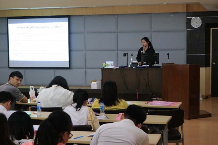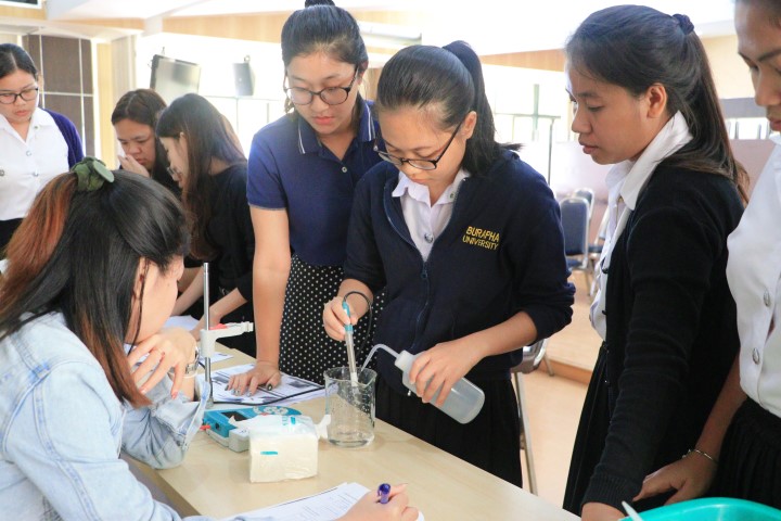 ด้วยบันทึกความร่วมมือเพื่อการพัฒนาระบบมาตรวิทยาระหว่างสถาบันมาตรวิทยาแห่งชาติ มว. กับ มหาวิทยาลัยมหาวิทยาลัยบูรพา (มบ.) ซึ่งมีวัตถุประสงค์เพื่อร่วมกันพัฒนาและจัดการหลักสูตรด้านมาตรวิทยาให้แก่นักศึกษา ของ มบ. รวมถึงบุคลากรภายนอกซึ่งสนใจในหลักสูตรด้านมาตรวิทยา นั้น ในการนี้ มว. และ มบ. ได้ร่วมกันจัดทำหลักสูตรสมรรถนะทางด้านมาตรวิทยาสำหรับนักวิทยาศาสตร์เคมีขึ้น สำหรับฝึกอบรมให้แก่นิสิต มบ. และผู้ที่มีความสนใจ เพื่อเป็นการเพิ่มความรู้และทักษะด้านมาตรวิทยาให้แก่กลุ่มบุคคลดังกล่าว โดยได้รับเกียรติจาก นางอัจฉรา เจริญสุข ผู้อำนวยการ มว. เป็นวิทยากร บรรยายให้ความรู้ในหัวข้อ “มาตรวิทยากับโครงสร้างพื้นฐานทางคุณภาพ” ดร.กิตติยา เชียร์แมน นักมาตรวิทยาชำนาญการพิเศษ ฝ่ายมาตรวิทยาเคมี บรรยายเรื่อง “การประกันคุณภาพทางเคมี” และ “การตรวจสอบความใช้ได้ของวิธีการวัดทางเคมี (Analytical method validation) ดร.นฤดม นวลขาว พนักงานประสานอบรมชำนาญการ ฝ่ายนโยบายและยุทธศาสตร์ บรรยายเรื่อง “ความไม่แน่นอนในการวัดเบื้องต้น” นางปทุมพร รอดเรืองธรรม นักมาตรวิทยาชำนาญการ ฝ่ายมาตรวิทยาเคมีและชีวภาพ บรรยายเรื่อง “การวัดค่าความเป็นกรด-เบสให้มีความถูกต้องและการดูแลรักษาเครื่อง pH” และดร.นงลักษณ์ ตั้งไพศาลกุล นักมาตรวิทยาชำนาญการ ฝ่ายมาตรวิทยาเคมีและชีวภาพ บรรยายเรื่อง “การสอบเทียบเครื่องแก้ว” ณ คณะวิทยาศาสตร์ มหาวิทยาลัยบูรพา จ.ชลบุรี
