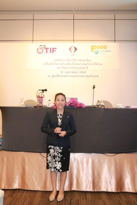ส่วนฝึกอบรม กลุ่มงานพัฒาธุรกิจ ฝ่ายนโยบายและยุทธศาสตร์ จัดอบรมหัวข้อ “เทคนิคการเลือกวิธีการสอบเทียบเครื่องมือวัดทางด้านเสียงให้เหมาะสมกับการใช้งาน” ในงาน Thailand Industrial Fair & Food Pack 2019 บรรยายให้ความรู้แก่ผู้เข้ารับการอบรมที่สนใจโดย นางสุรัตน์ ลีอุดมวงษ์ นักมาตรวิทยาชำนาญการพิเศษ และนางสาวปาณิศรา คงถาวร นักมาตรวิทยาปฏิบัติการ กลุ่มงานเสียงและการสั่นสะเทือน โดยมีวัตถุประสงค์เพื่อให้ผู้เข้ารับการอบรมมีความรู้ ความเข้าใจในการเลือกวิธีการสอบเทียบเครื่องมือให้สอดคล้องกับการใช้งาน และมาตรฐานที่เกี่ยวข้อง รวมถึงสามารถเข้าใจหลักการและวิธีการในการพิจารณาค่าจากใบรายงานผลการสอบเทียบ และสามารถเลือกใช้ค่าที่จะนำมาปรับค่าเครื่องวัดเสียง ก่อนการนำไปใช้งานได้อย่างถูกต้อง ตามมาตรฐาน ฉบับปัจจุบัน ณ ศูนย์นิทรรศการและการประชุมไบเทค บางนา กรุงเทพ