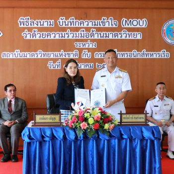 - พลเรือตรี ชาลี ส่องสว่างธรรม เจ้ากรมอิเล็กทรอนิกส์ทหารเรือ และนางอัจฉรา เจริญสุข ผู้อำนวยการสถาบันมาตรวิทยาแห่งชาติ
