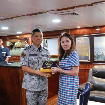 - นาวาเอกภาณุพันธุ์ รักษ์แก้ว ผู้บังคับการเรือหลวงนเรศวร มอบของที่ระลึกแก่ ผมว.