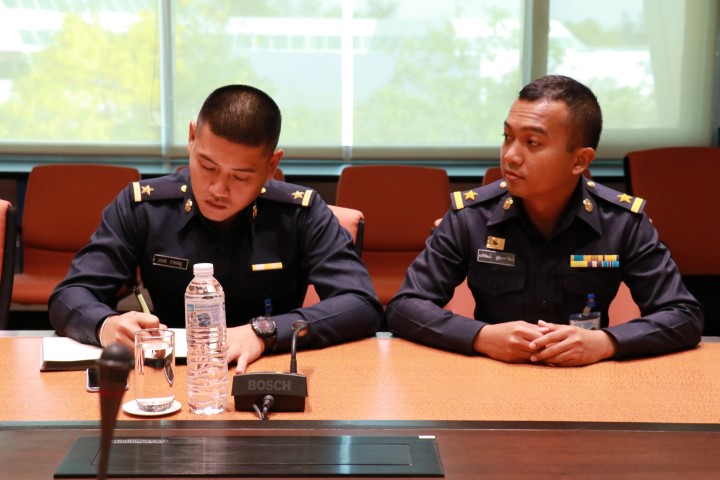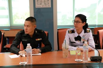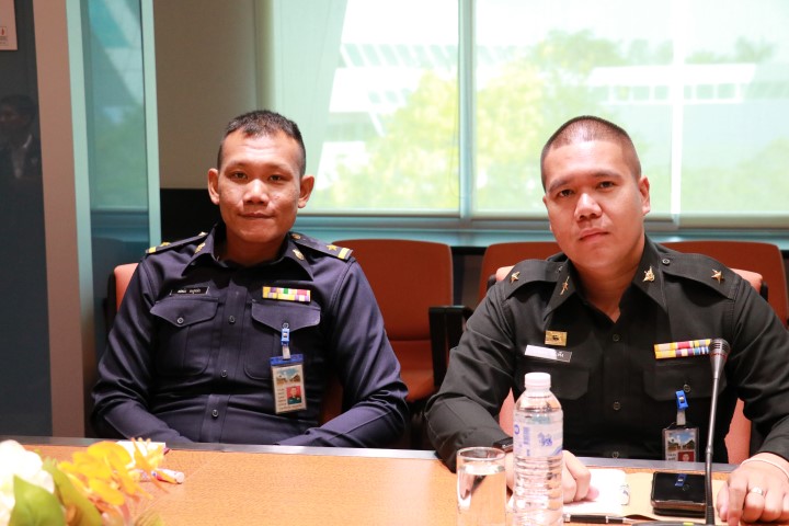 - ดร.นฤดม นวลขาว ผู้กำกับดูแล กลุ่มงานพัฒนาธุรกิจ ฝ่ายนโยบายและยุทธศาสตร์ ให้การต้อนรับข้าราชการจากโรงงานวัตถุระเบิดทหาร