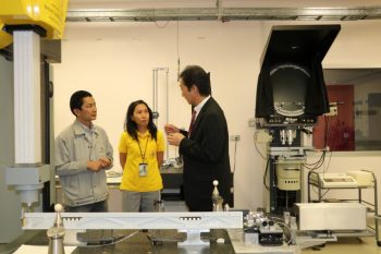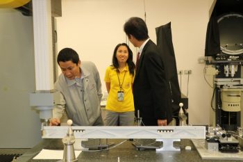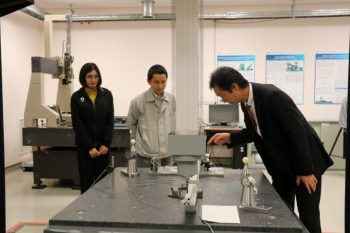 ดร.จริยา บัวเจริญ รักษาการหัวหน้าฝ่ายมาตรวิทยามิติ พร้อมด้วย ดร.วิโรจน์ สุดาธรรม หัวหน้าห้องปฏิบัติการระยะพิกัด ให้การต้อนรับ Dr. Makoto ABE ผู้เชี่ยวชาญจาก National Metrology Institute of Japan (NMIJ) ในโอกาสเข้าเยี่ยมชมห้องปฏิบัติการ ณ อาคารผดุงมาตร มว. จ.ปทุมธานี ก่อนเดินทางไปบรรยายในงาน สัมมนา “เทคโนโลยีการควบคุมคุณภาพสำหรับอุตสาหกรรมยุคใหม่” ในวันที่ 9 กรกฎาคม 2562 ณ โรงแรมบางแสนเฮริเทค จ.ชลบุรี