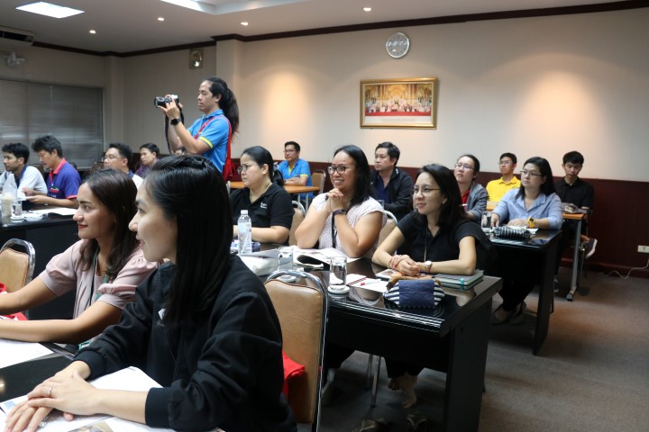 กลุ่มบริหารงานบุคคล ฝ่ายบริหารกลาง จัดอบรมภาษาอังกฤษ โครงการ “English for Workplace Communication” ให้แก่พนักงานและลูกจ้าง มว. โดยวิทยากรจากศูนย์ภาษา คณะมนุษยศาสตร์ มหาวิทยาลัยเกษตรศาสตร์ โดยมีวัตถุประสงค์เพื่อให้พนักงานและลูกจ้าง มว. ได้มีความรู้ ความเข้าใจ มีทักษะในการสื่อสารภาษาอังกฤษ และสามารถนำความรู้ที่ได้ไปปฏิบัติงานได้อย่างมีประสิทธิภาพ ซึ่งการอบรมนี้จะจัดทุกๆ วันพุธ ระหว่างเวลา 13.00 – 16.00 น. เป็นระยะเวลา 12 วัน จำนวนรวม 36 ชั่วโมง ณ อาคารสำนักงานกลาง มว. จ.ปทุมธานี