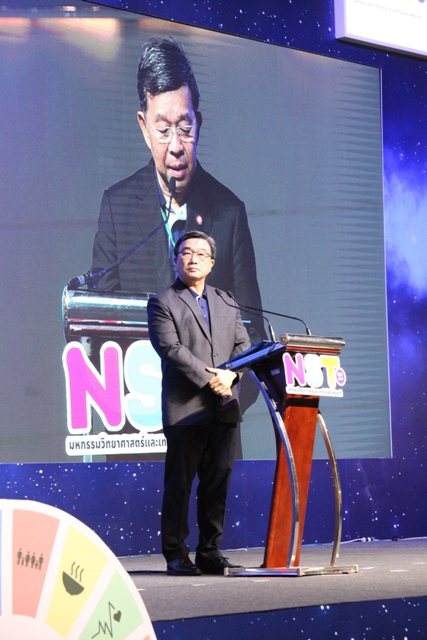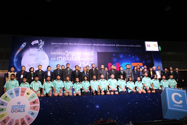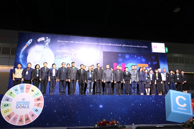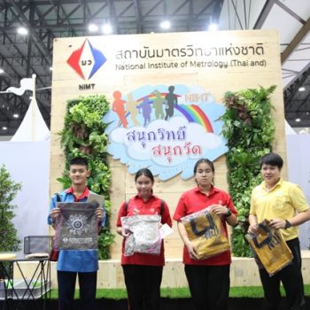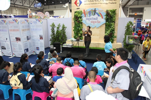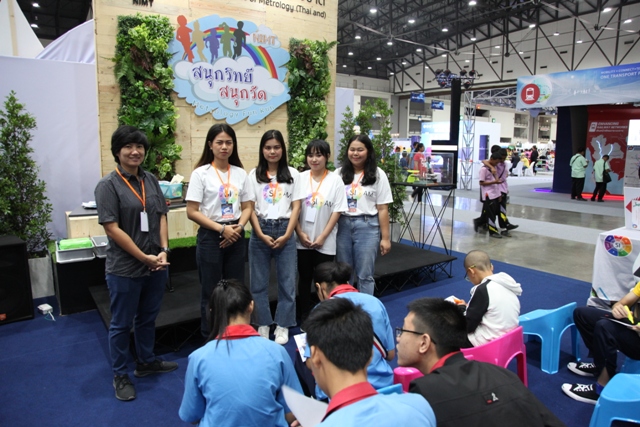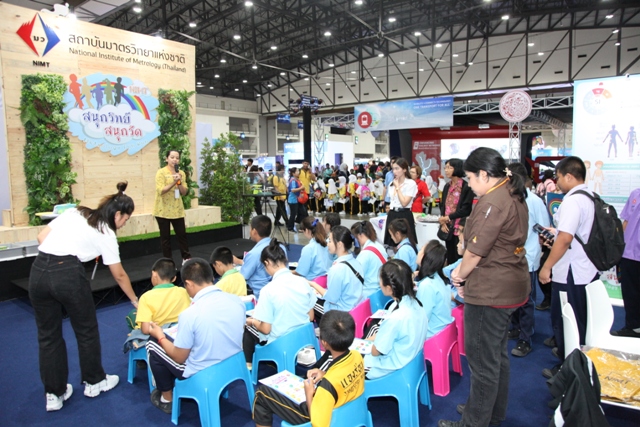 รศ.ดร.วีระพงษ์ แพสุวรรณ ประธานที่ปรึกษารัฐมนตรีว่าการกระทรวงอุดมศึกษา วิทยาศาสตร์ วิจัย และนวัตกรรม (อว.) เป็นประธานในการเปิดงาน “มหกรรมวิทยาศาสตร์และเทคโนโลยีแห่งชาติ 2562” ที่เปิดฉากแล้วอย่างยิ่งใหญ่กับงาน ภายใต้แนวคิด “จุดประกายความคิด พัฒนาชีวิตด้วยวิทยาศาสตร์ เสริมสร้างชาติด้วยเทคโนโลยี สู่วิถีแห่งนวัตกรรมอย่างยั่งยืน” พร้อมโชว์ผลงานและศักยภาพทางวิทยาศาสตร์ เทคโนโลยีที่ทันสมัยทั้งในและต่างประเทศจาก 17 ประเทศ 103 องค์กร อย่างอลังการ ชู “9 ไฮไลท์ สร้างแรงบันดาลใจ” ในโอกาสนี้ ผู้บริหาร มว. ร.ท. อุทัย นรนิ่ม ผู้ช่วยผู้อำนวยการ มว. ได้เข้าร่วมพิธีเปิดและเยี่ยมชมบูธ มว. พร้อมกันนี้ยังได้ต้อนรับ คุณองอาจ ปัญญาชาติรักษ์ ที่ปรึกษารัฐมนตรีว่าการกระทรวงอุดมศึกษา วิทยาศาสตร์ วิจัย และนวัตกรรม (อว.) เข้าเยี่ยมชมบูธเช่นกัน สำหรับปีนี้ มว. ได้นำเสนอนิทรรศการในหัวข้อ “สนุกวิทย์ สนุกวัด…Metrology Fun Run” ที่นำเสนอเรื่องราวของการวิ่งที่กำลังได้รับความนิยมจากประชาชนเป็นอย่างมาก เพราะการวิ่งเป็นการออกกำลังกายที่ง่ายที่สุด ซึ่งในปัจุบันประชาชนที่สนใจในการวิ่งจะมีการใช้อุปกรณ์ที่ช่วยส่งเสริมให้การวิ่งมีความสนุกสนาน และมีประสิทธิภาพมากขึ้น อาทิ มีการจับเวลาในการวิ่งออกกำลังกาย การวัดระยะทางในการวิ่ง รวมไปถึงการวัดต่างๆ ด้านสุขภาพ ไม่ว่าจะเป็นการเต้นของหัวใจ การวัดความดันโลหิต ต่างๆ ซึ่งการวัดต่างๆเหล่านี้จะเกี่ยวข้องกับมาตรวิทยาทั้งทางตรงและทางอ้อม โดยผู้ที่เข้าร่วมกิจกรรมในบูธจะได้ทราบและเข้าใจว่านอกจากเราจะสนุกหรือมีความสุขกับการออกกำลังกายแล้ว การมีเครื่องมือวัดที่แม่นยำก็จะช่วยทำให้การวิ่งออกกำลังกายเกิดประสิทธิภาพสูงสุด และปลอดภัยได้อีกด้วย พร้อมกันนี้ มว. ยังได้นำเสนอข้อมูลองค์ความรู้และประโยชน์ทางด้านมาตรวิทยา ที่นำมาใช้ในกิจกรรมการวิ่งที่ อาทิ นักวิ่งออกกำลังกายต้องมีรองเท้าวิ่งคู่ใจเพราะคนเรามีขนาดและรูปเท้าที่ไม่เหมือนกันต้องเลือกรองเท้าวิ่งให้เหมาะสมกับขนาดความกว้างยาวของเท้าและรูปเท้ามากกว่าความสวยงามหลายคนคิดว่าการวิ่งออกกำลังกายคือสวมรองเท้าและวิ่งได้เลยต้องมีการฝึกการลงเท้าในแบบต่างๆ เพื่อป้องกันแรงกระแทกที่ทำให้บาดเจ็บจากการวิ่ง ซึ่งปัจจุบันระบบมาตรวิทยาเป็นส่วนสำคัญที่ทำให้ไม่เกิดการบาดเจ็บขณะวิ่งออกกำลังกายได้ นอกจากข้อมูลเรื่องของการวัดที่เกี่ยวกับการวิ่งออกกำลังกายแล้วภายในบูธของ มว. ยังมีความรู้เรื่องวิวัฒนาการของระบบหน่วยระหว่างประเทศและกา