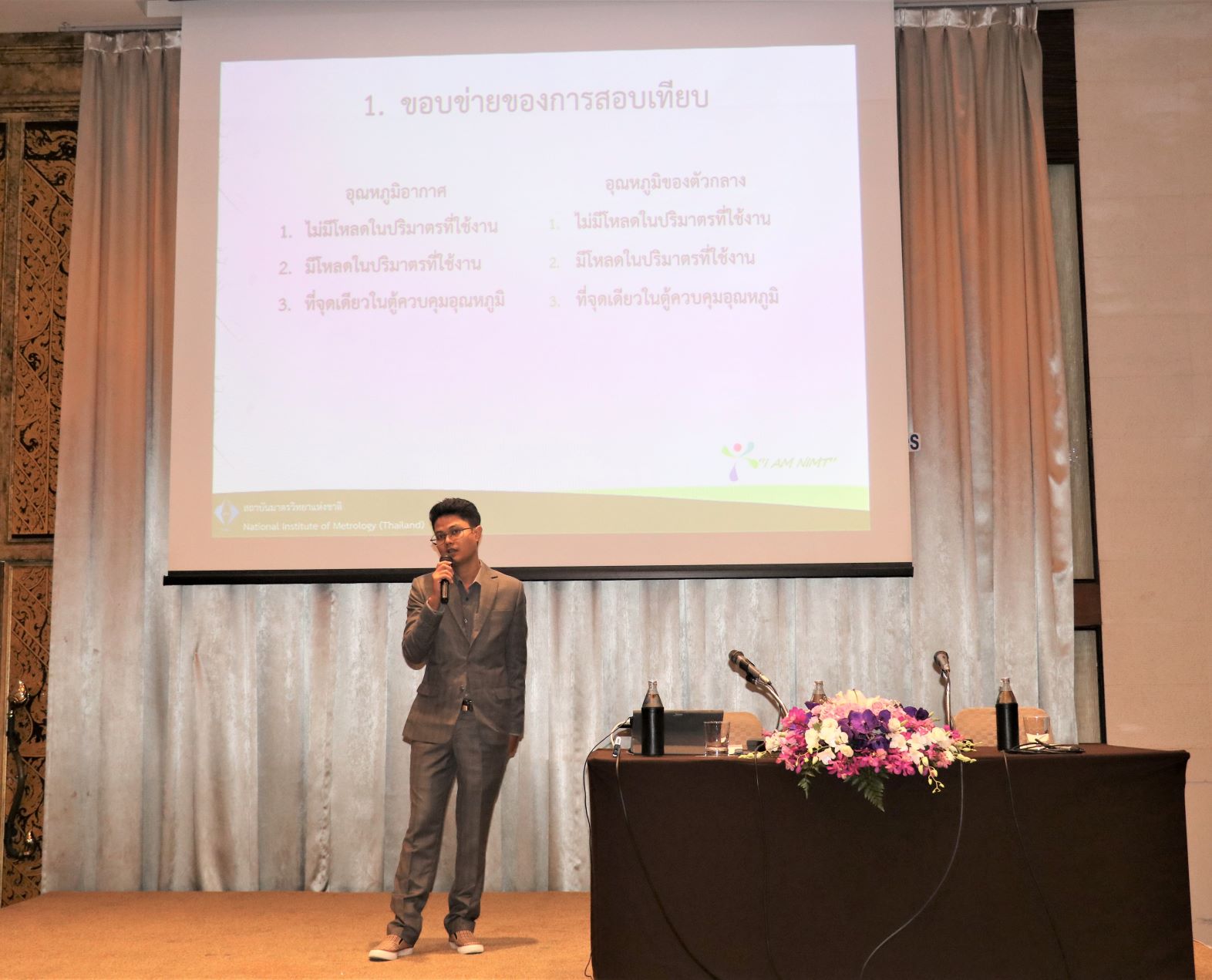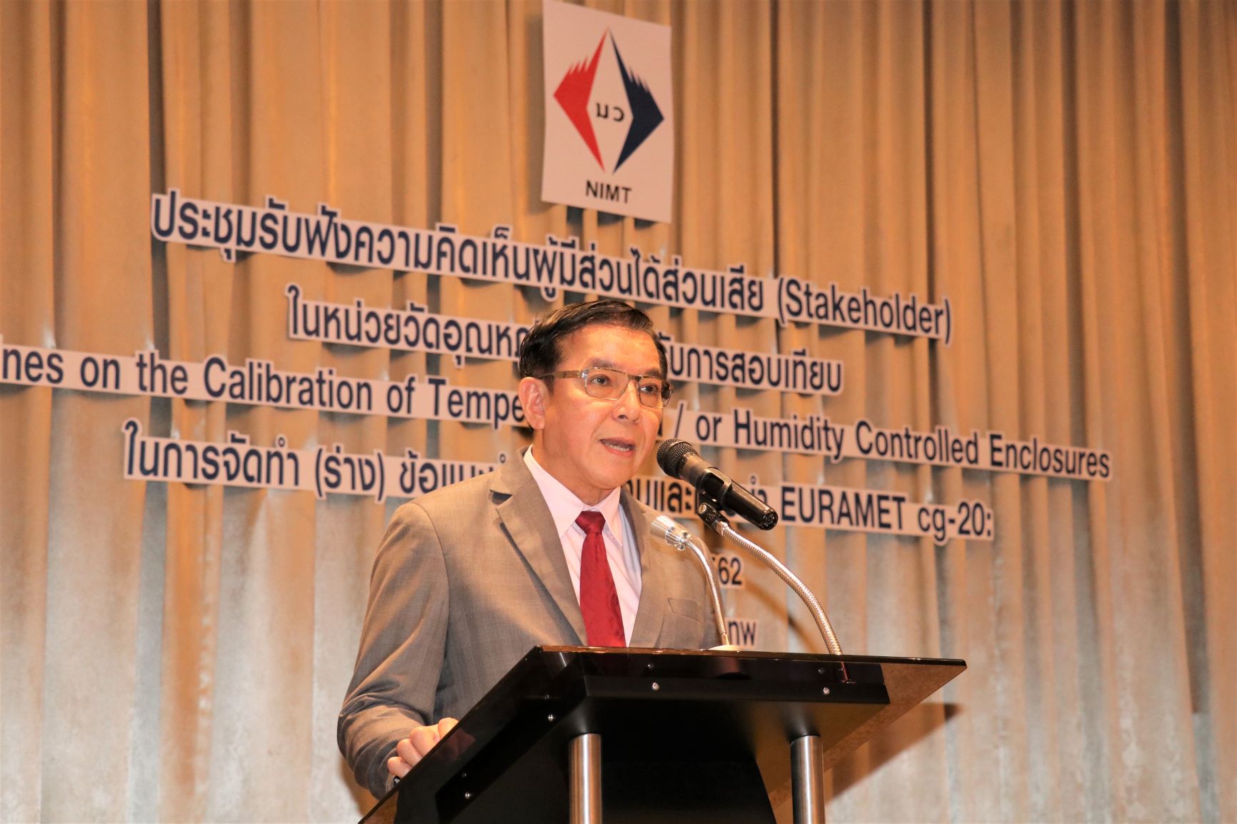 สถาบันมาตรวิทยาแห่งชาติ (มว.) โดยฝ่ายมาตรวิทยาอุณหภูมิและแสง จัดสัมมนาการตีความและการนำ EURAMET Calibration Guide No.20 ไปใช้สำหรับการสอบเทียบ Calibration of Temperature Controlled Enclosures. โดยมี ร.ท. อุทัย นรนิ่ม ผู้ช่วยผู้อำนวยการ มว. เป็นประธานกล่าวเปิดงานในวันที่ 27 สิงหาคม 2562 ณ โรงแรม เดอะสุโกศล กรุงเทพฯ