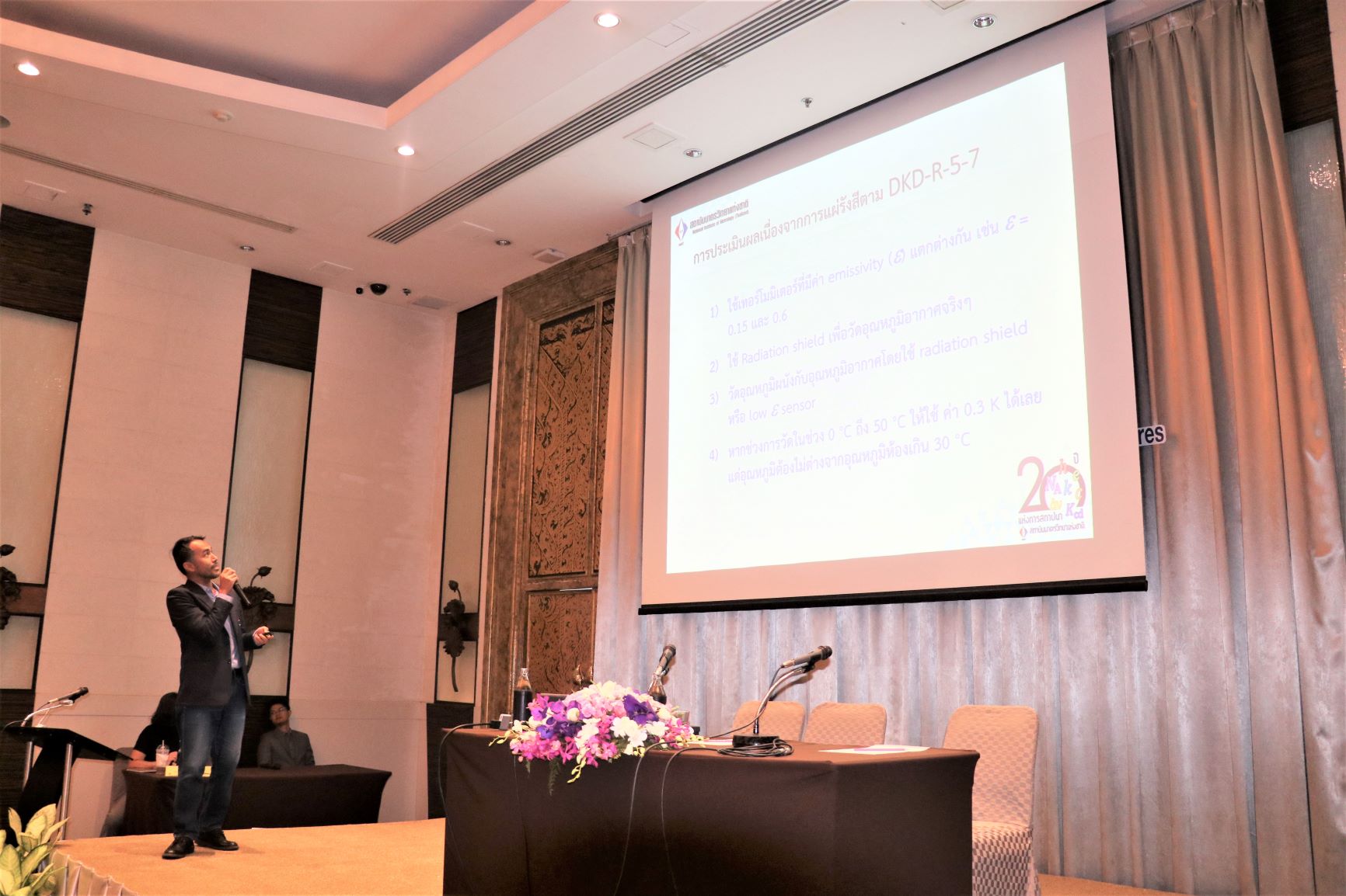 - นางจรวยรัตน์ เหย่ากุลบดี รักษาการหัวหน้าฝ่ายมาตรวิทยาอุณหภูมิและแสง กล่าวรายงาน