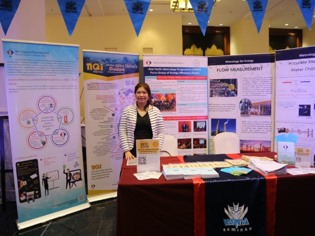 มว. ร่วมจัดนิทรรศการในงานสัมมนาเชิงวิชาการเรื่อง Innovative Efficiency Improvement and Maintenance in Power Plant ณ โรงแรมโนโวเทล สุวรรณภูมิ แอร์พอร์ต ที่จัดโดย บริษัท วราคณะ จำกัด ซึ่งในงานสัมมนาประกอบไปด้วยผู้แทนจากหน่วยงานทั้งภาครัฐและเอกชนในกลุ่มงานประเภทการเดินเครื่องและซ่อมบำรุงจากอุตสาหกรรมผลิตไฟฟ้าและพลังงาน รวมไปถึงภาคธุรกิจที่สนใจในการนำเทคโนโลยี และนวัตกรรม ที่มีประสิทธิภาพ แม่นยำเชื่อถือได้ มาประยุกต์ใช้ในงานอุตสาหกรรม ในการนี้ มว. ร่วมจัดนิทรรศการแนะนำหน่วยงาน อาทิ การจัดอบรม และสัมมนา พร้อมทั้งนำเสนอนิทรรศการในหัวข้อ Metrology for Energy ที่เป็นการนำผลงานและความรู้ด้านการใช้เครื่องมือวัดอย่างถูกต้องและเหมาะสมไปประยุกต์ใช้ในการจัดการพลังงานอย่างมีประสิทธิภาพ อาทิ การวัดทางด้านอุณหภูมิและแสง การวัดด้านปริมาตรและการไหล โดยมี ดร.อ้อยใจ อ่องหร่าย และ ดร.ธาดา แก้วประเสริฐ นักมาตรวิทยา จากฝ่ายมาตรวิทยาอุณหภูมิและแสงร่วมให้ความรู้ด้านมาตรวิทยาแก่ผู้สนใจ พร้อมทั้งร่วมประชาสัมพันธ์และเชิญชวนผู้ที่สนใจ เข้าร่วมชมงานนิทรรศการและการสัมมนาในหัว Metrology For Energy Efficiency ในงาน SETA 2019 ที่กำลังจะจัดขึ้นในวันที่ 10 -12 ตุลาคม 2562 ณ ศูนย์นิทรรศการและการประชุมไบเทค บางนา